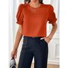GMXIA Женская летняя модная стильная однотонная рубашка с круглым вырезом