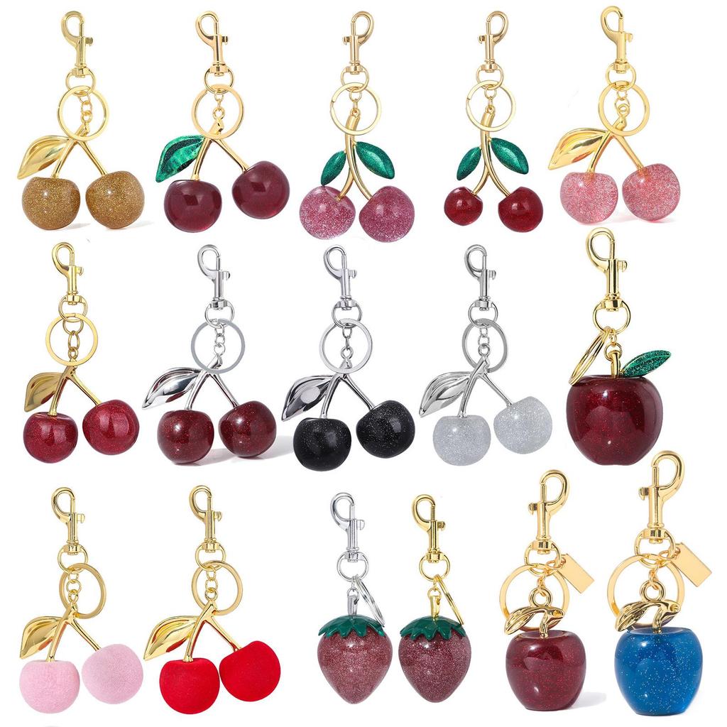 12 роскошных брелоков Cherry: Креативные подвески в виде сумки с имитацией фруктов и блестками из кристаллов для женщин