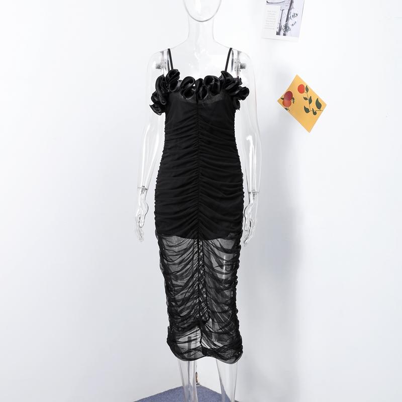 Платье-комбинация с оборками и складками, женское облегающее, с запахом, длинное, сексуальное, с открытой спиной, на бретелях, летняя новая мода — купить товар онлайн с бесплатной доставкой по всему миру!