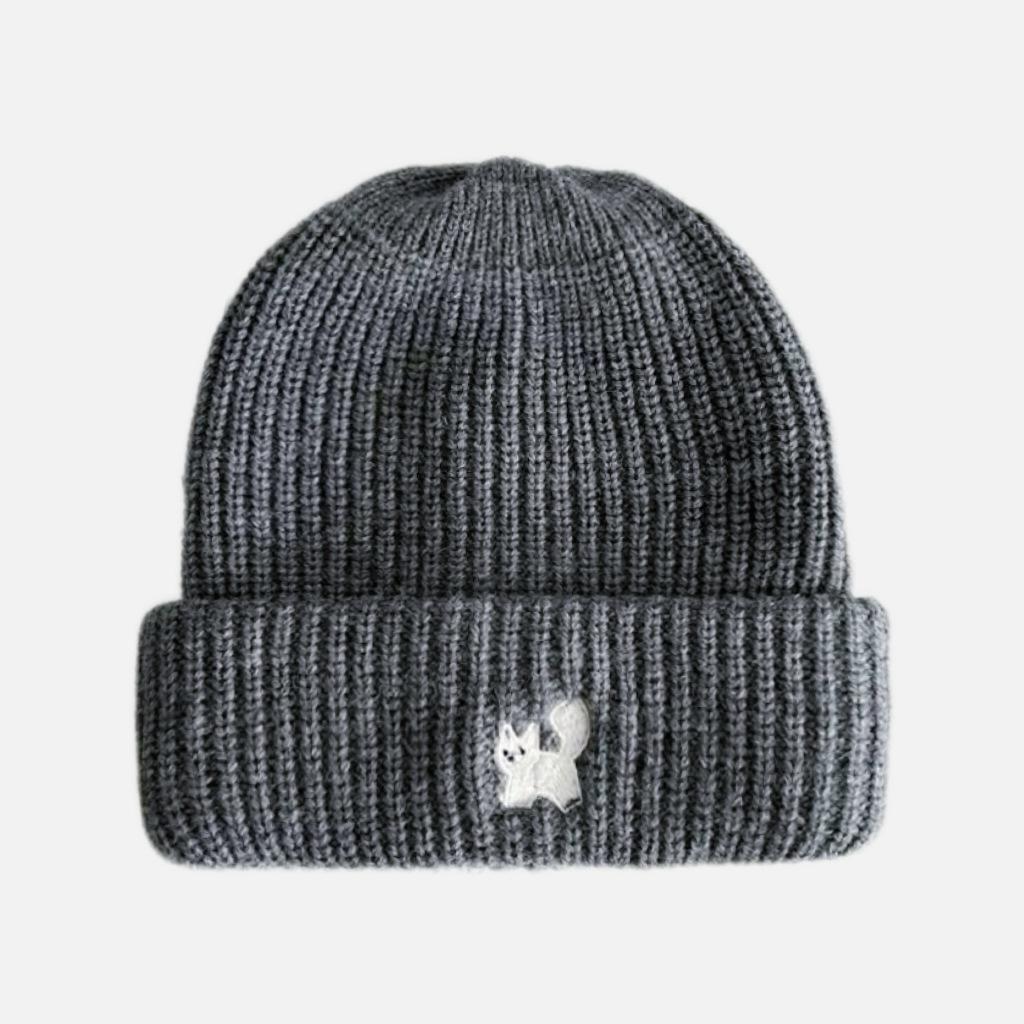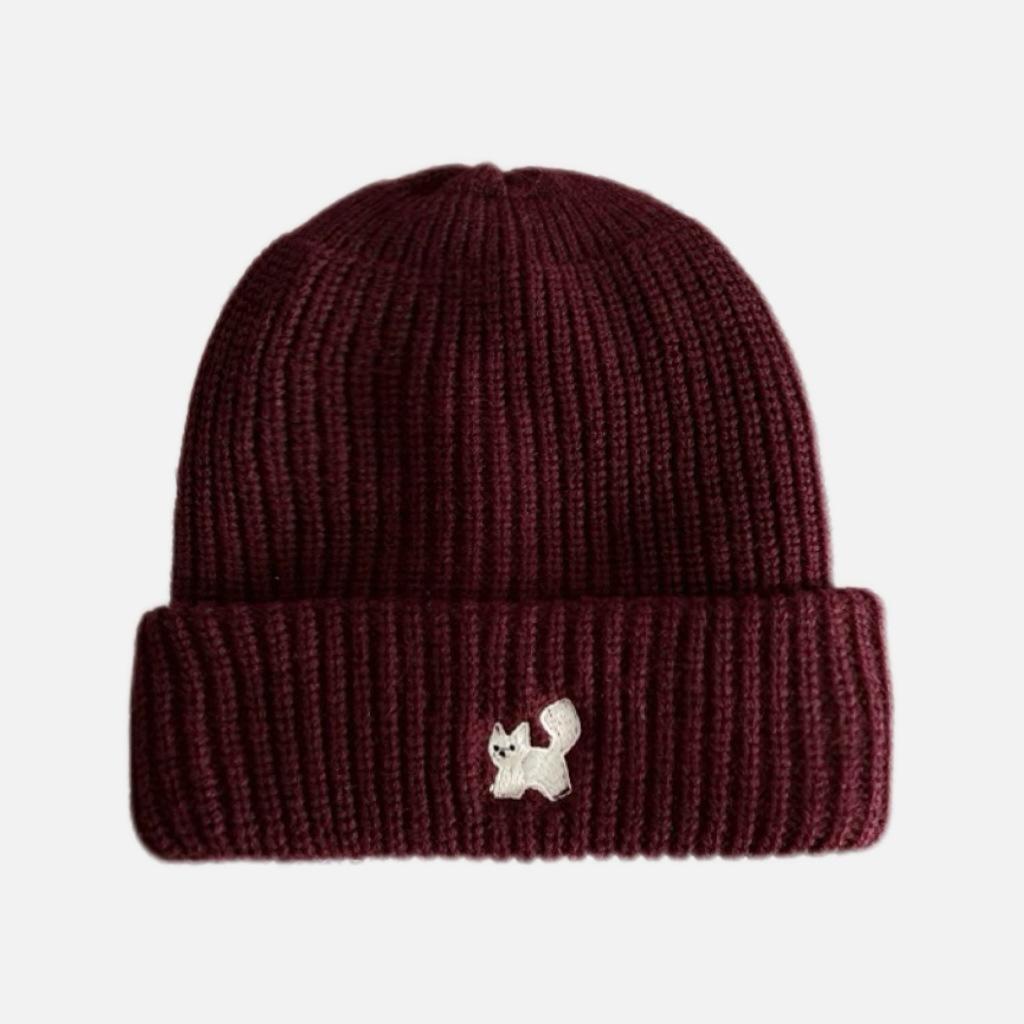 Теплая универсальная защитная шапка для ушей, модная холодная шапка для осени и зимы, простая вязаная шерстяная шапка с вышивкой в виде мультяшного котенка