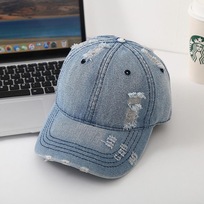 Новая бейсболка с дырками для мужчин и женщин, потертая джинсовая бейсболка с дырками, повседневная модная персонализированная универсальная шляпа для женщин прилив