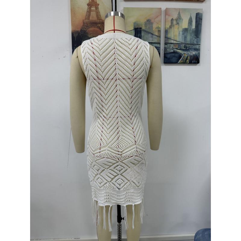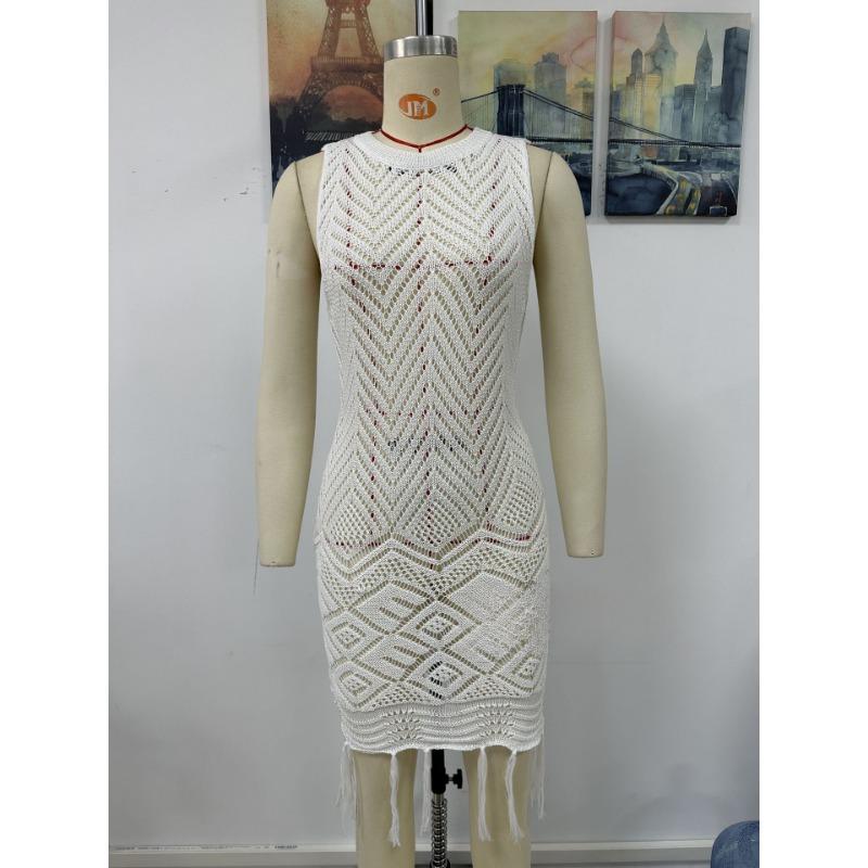 Женское летнее новое трикотажное платье с бахромой и вырезом в городском стиле