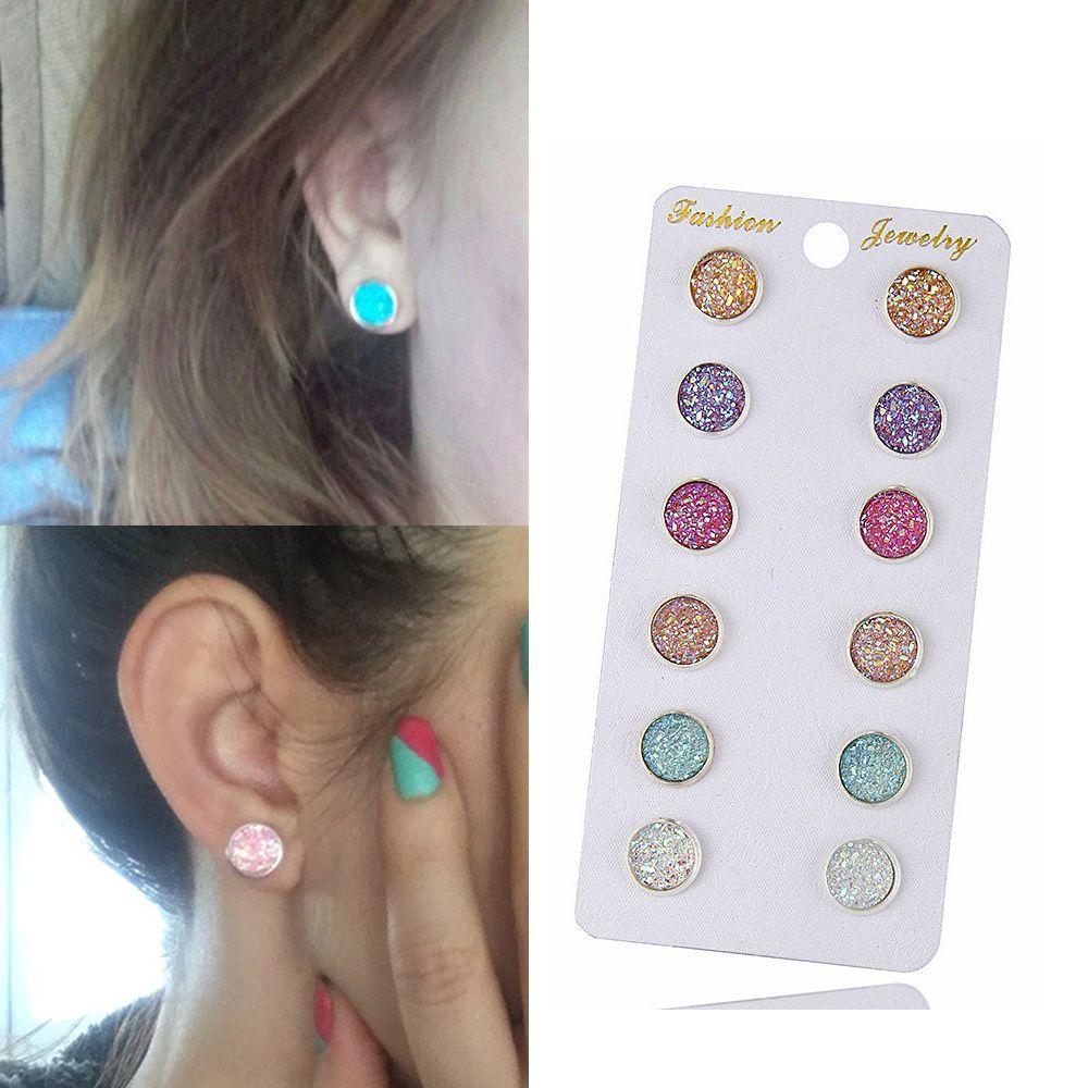 Уникальные украшения из натурального камня Аметист Кварц Серьги-пусеты Янтарь Опал Кошачий глаз Серьги-пусеты Друзы
