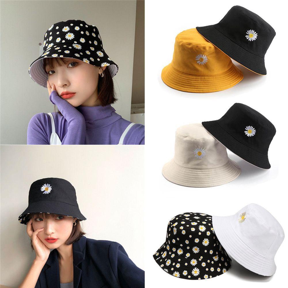 Модная хлопковая уличная солнцезащитная кепка с маргаритками, двухсторонняя шляпа-ведро, складная шляпа от солнца