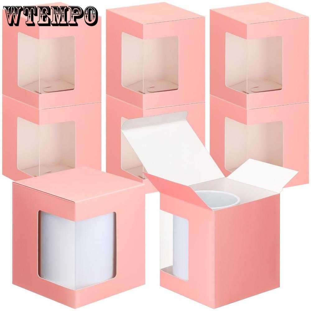 20 шт. розовых коробок для кружек для подарков, коробки для кофейных кружек, подарочные коробки с прозрачным окном для доставки, кружки, бумажные коробки для сладостей, подарочная упаковочная коробка