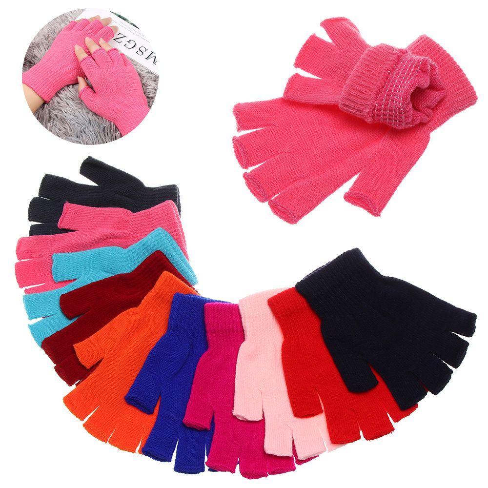 Женские и мужские перчатки конфетного цвета, сохраняющие тепло пальцев, толстые, теплые, короткие, вязаные, варежки с половиной пальцев