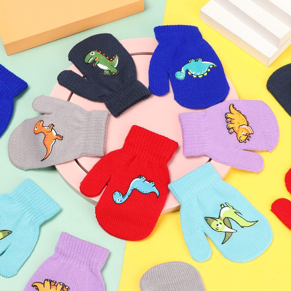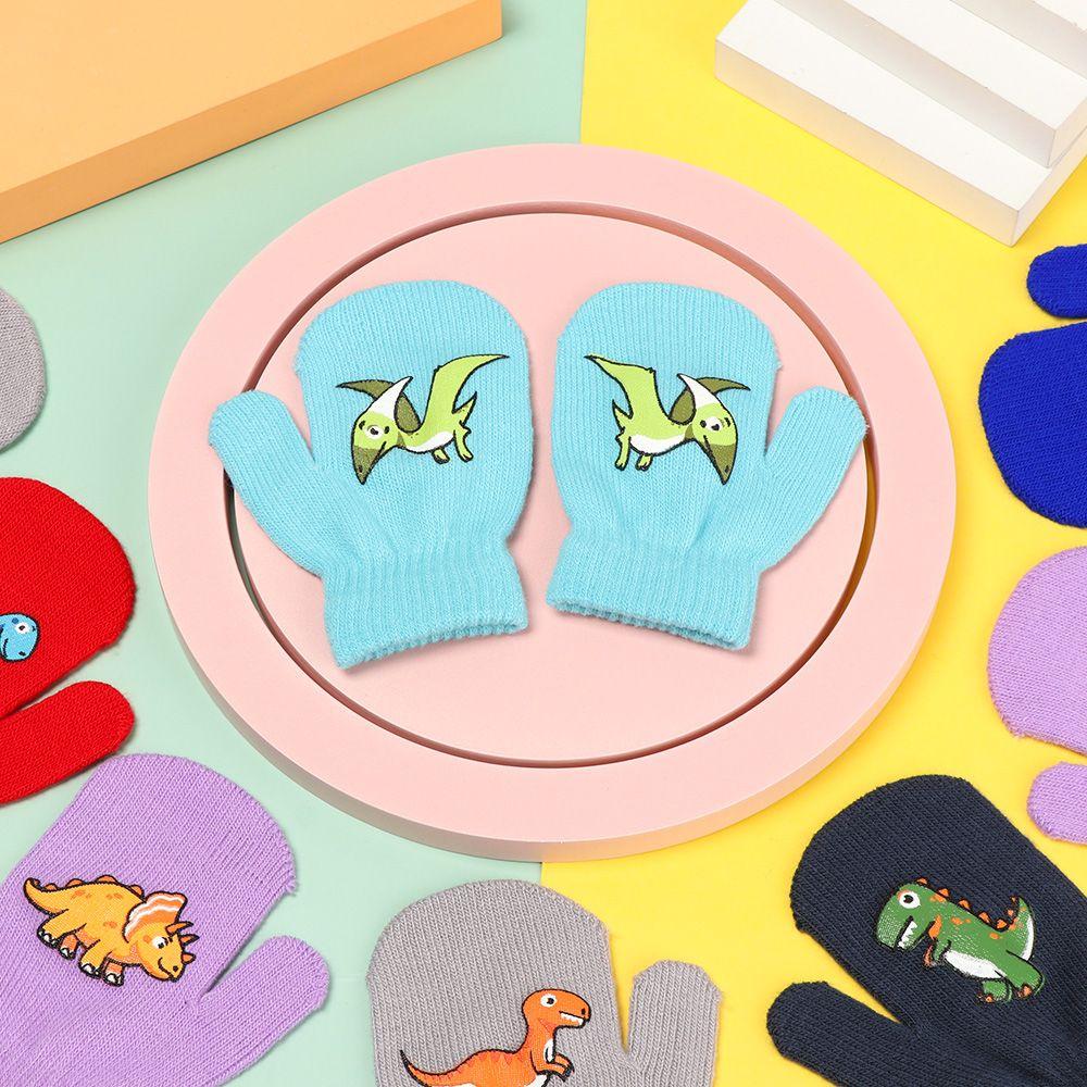 Детские спортивные варежки с изображением динозавра из мультфильма, утолщенные детские перчатки с полным пальцем