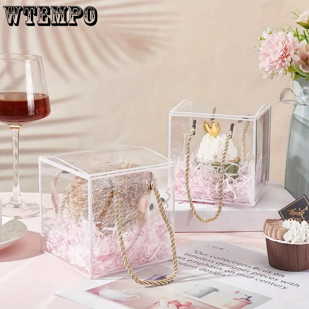 8 шт. прозрачных подарочных коробок из ПВХ с ручками из полиэстерового шнура, квадратная прозрачная коробка, подарочная упаковочная коробка, ювелирные украшения, упаковка, дисплей, прозрачные витрины