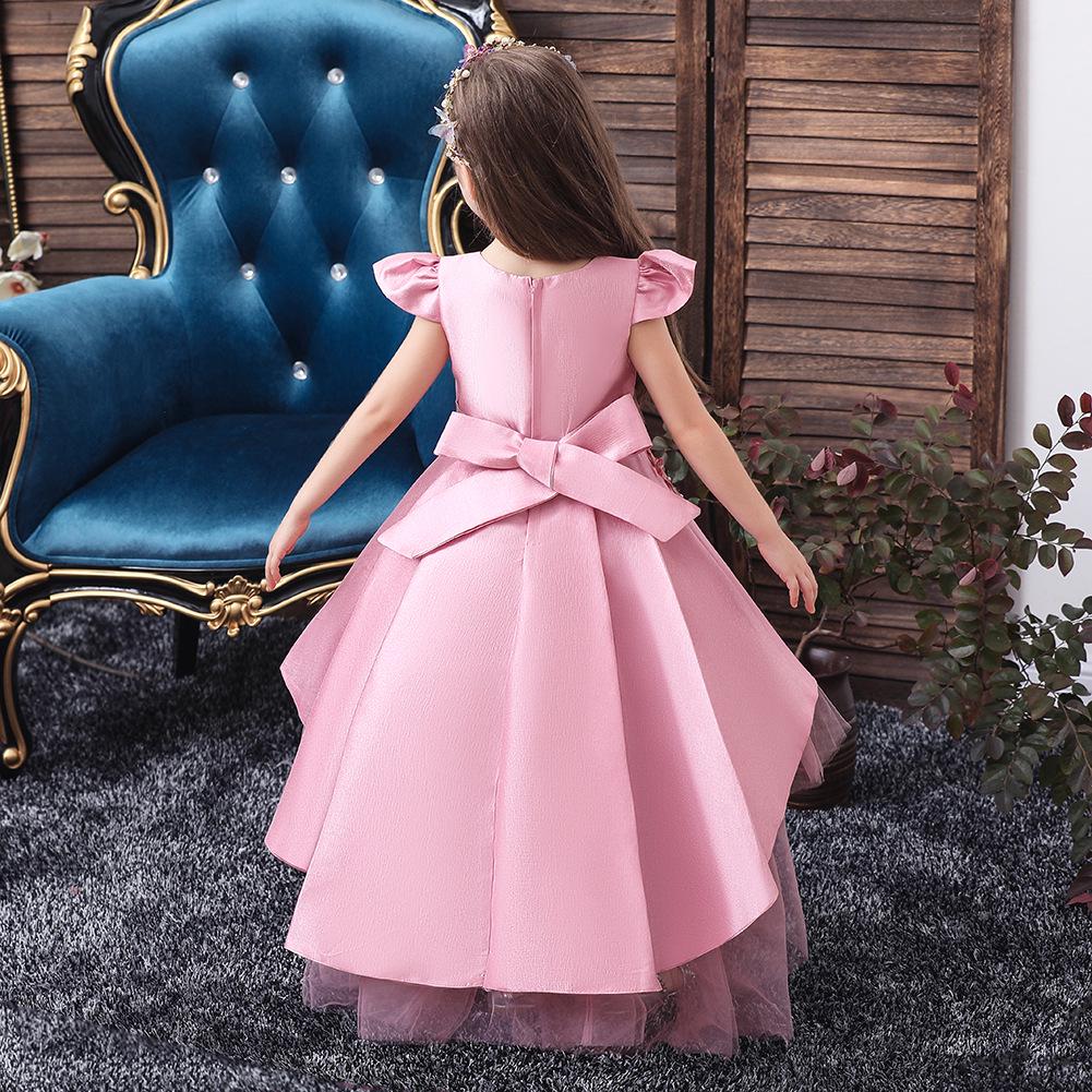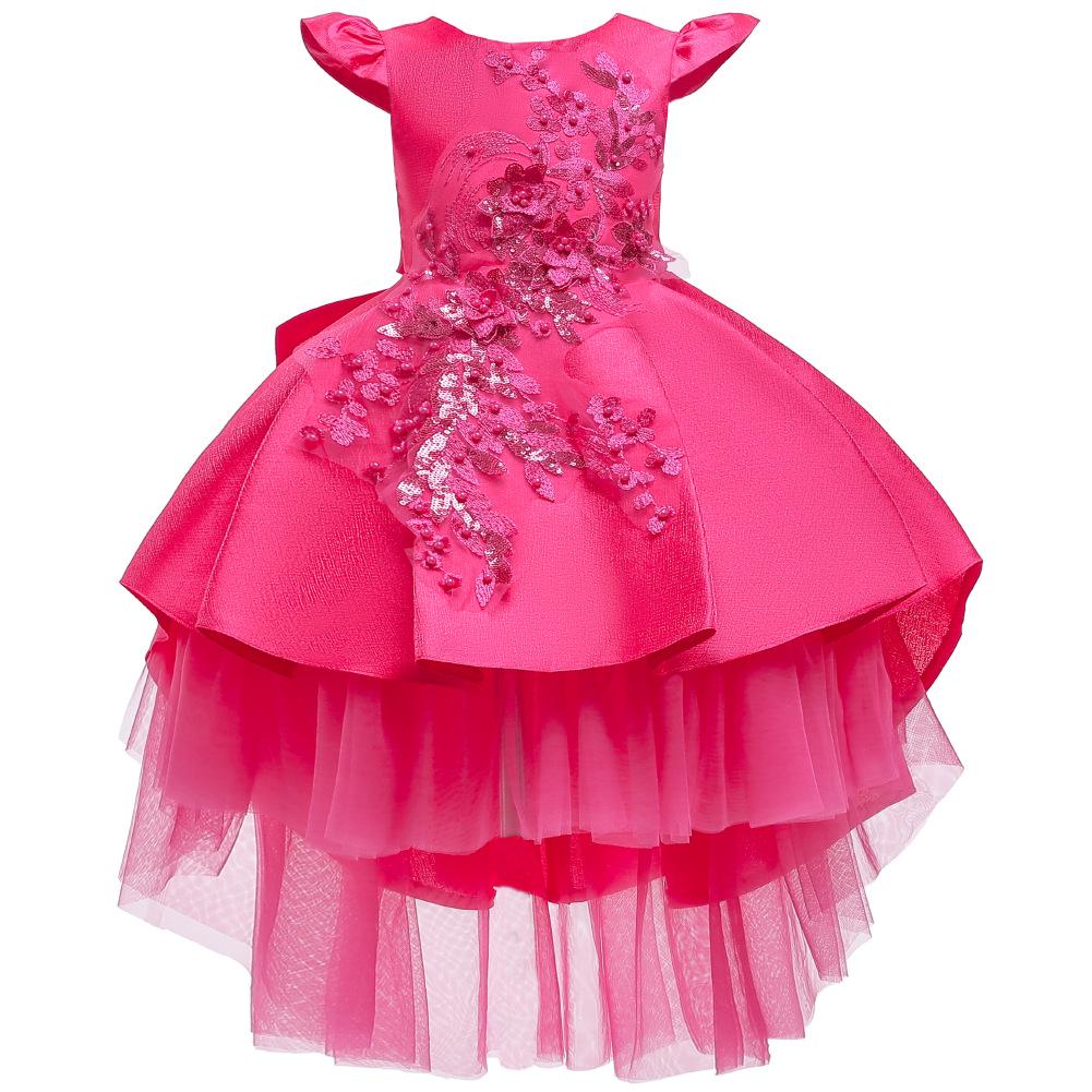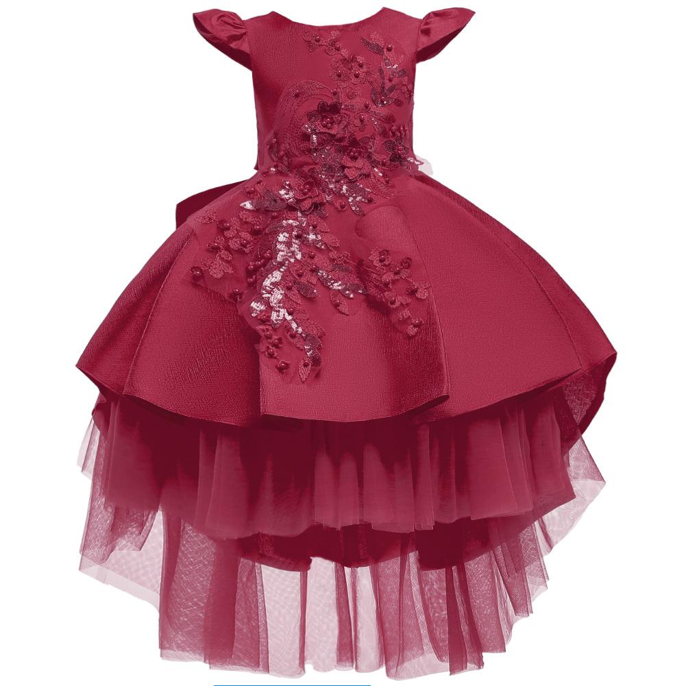 Детские свадебные пышные костюмы для фортепиано с цветочным узором для девочек, тюлевое платье с рукавами-крылышками и вышивкой для девочек, платье со шлейфом для девочек, платье принцессы для подиума