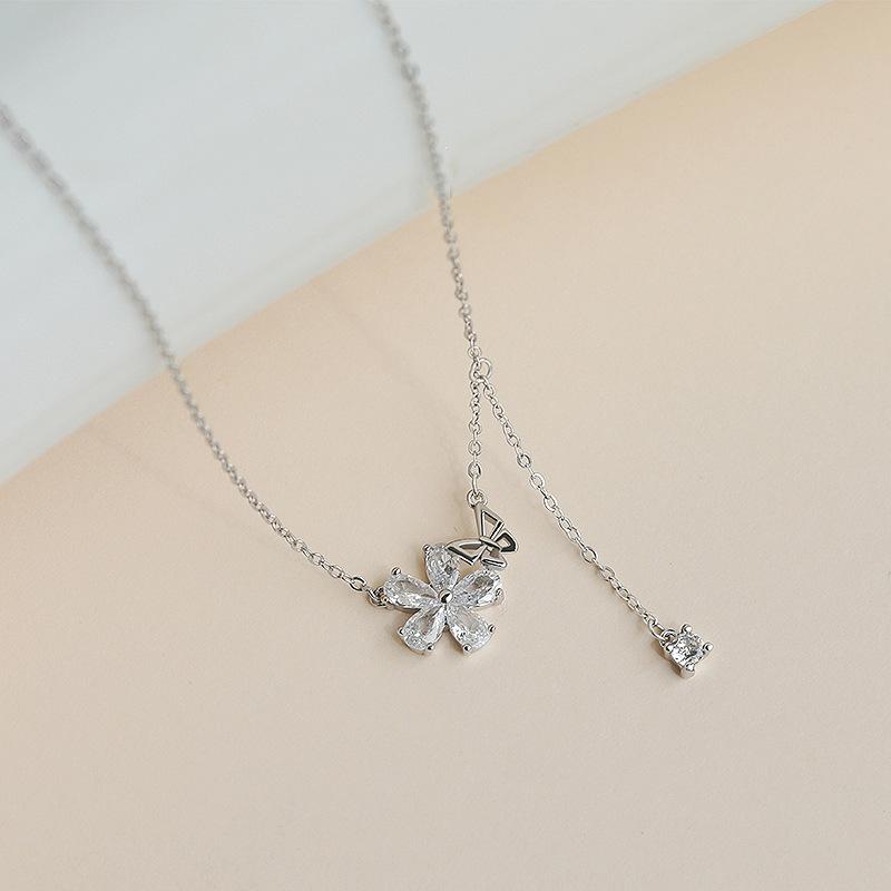 Ожерелье с бабочкой и цветком любви, женское, легкое, роскошное, простое, с кисточками, с маленьким бриллиантом, с цепочкой на ключицу в виде бабочки в виде вишневого цвета