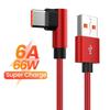 Кабель для быстрой зарядки 6A 66W Type C USB для Samsung Huawei Xiaomi OPPO VIVO POCO, угловой, 90 градусов, игровой зарядный кабель