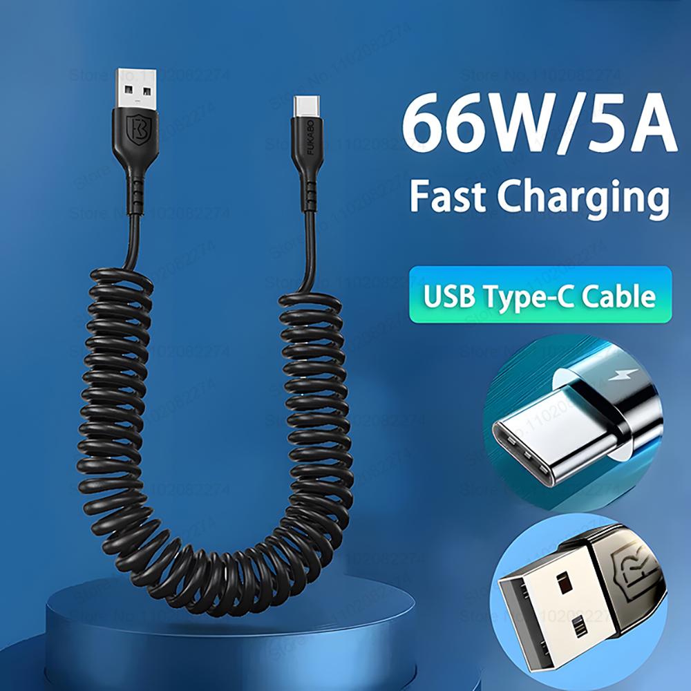5A 66W USB Type C пружинный автомобильный кабель для быстрой зарядки для Samsung Xiaomi Redmi Huawei POCO Realme быстрое зарядное устройство дата-кабель аксессуары