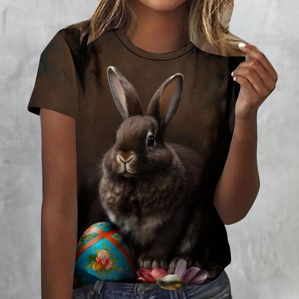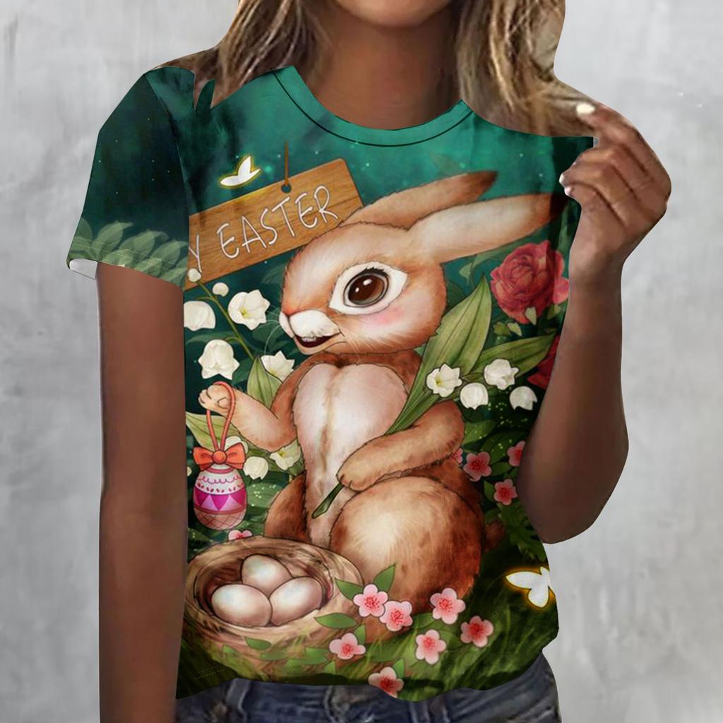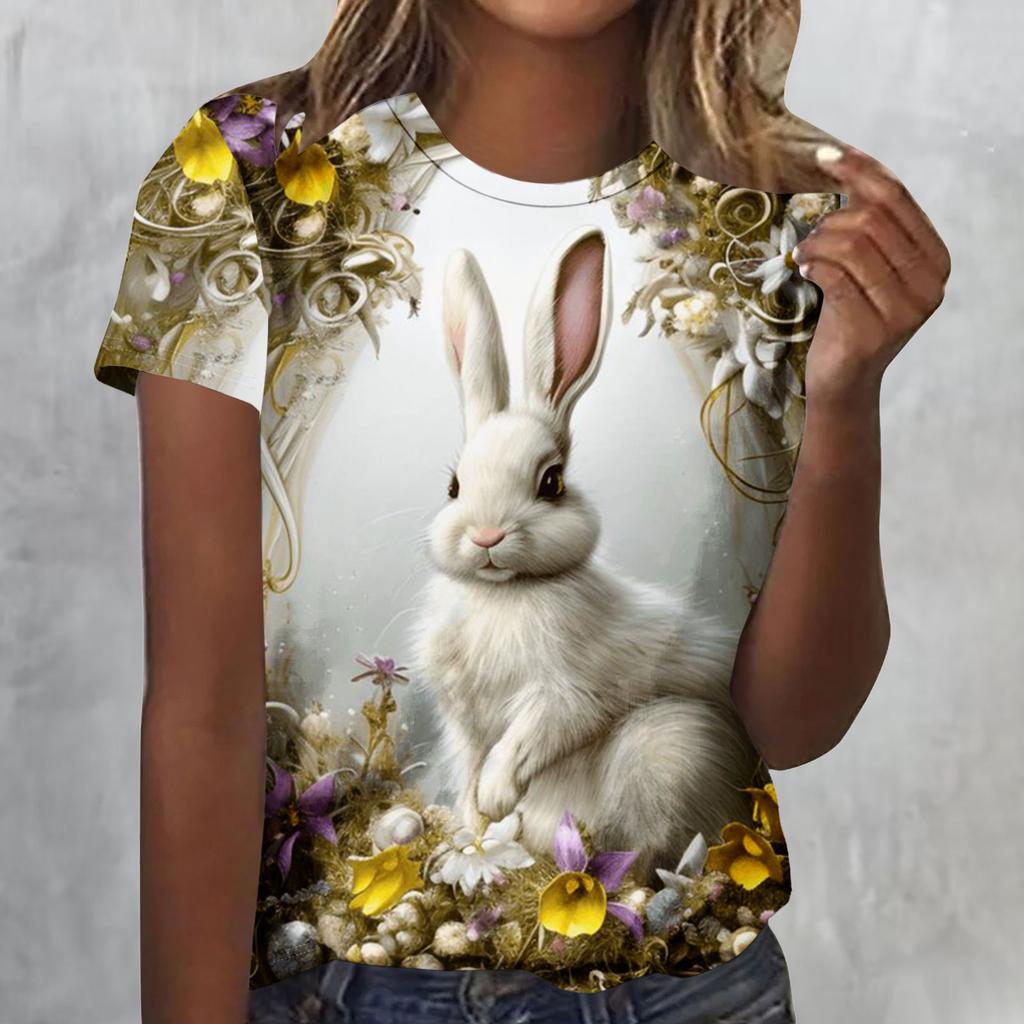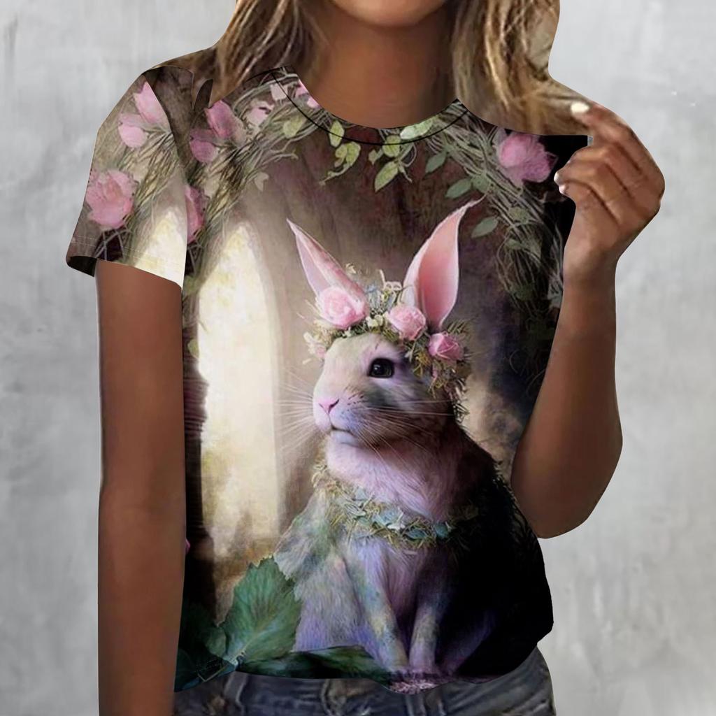 Летний топ с круглым вырезом и 3D-принтом в виде цветов, животных и кроликов, модные повседневные женские футболки с короткими рукавами