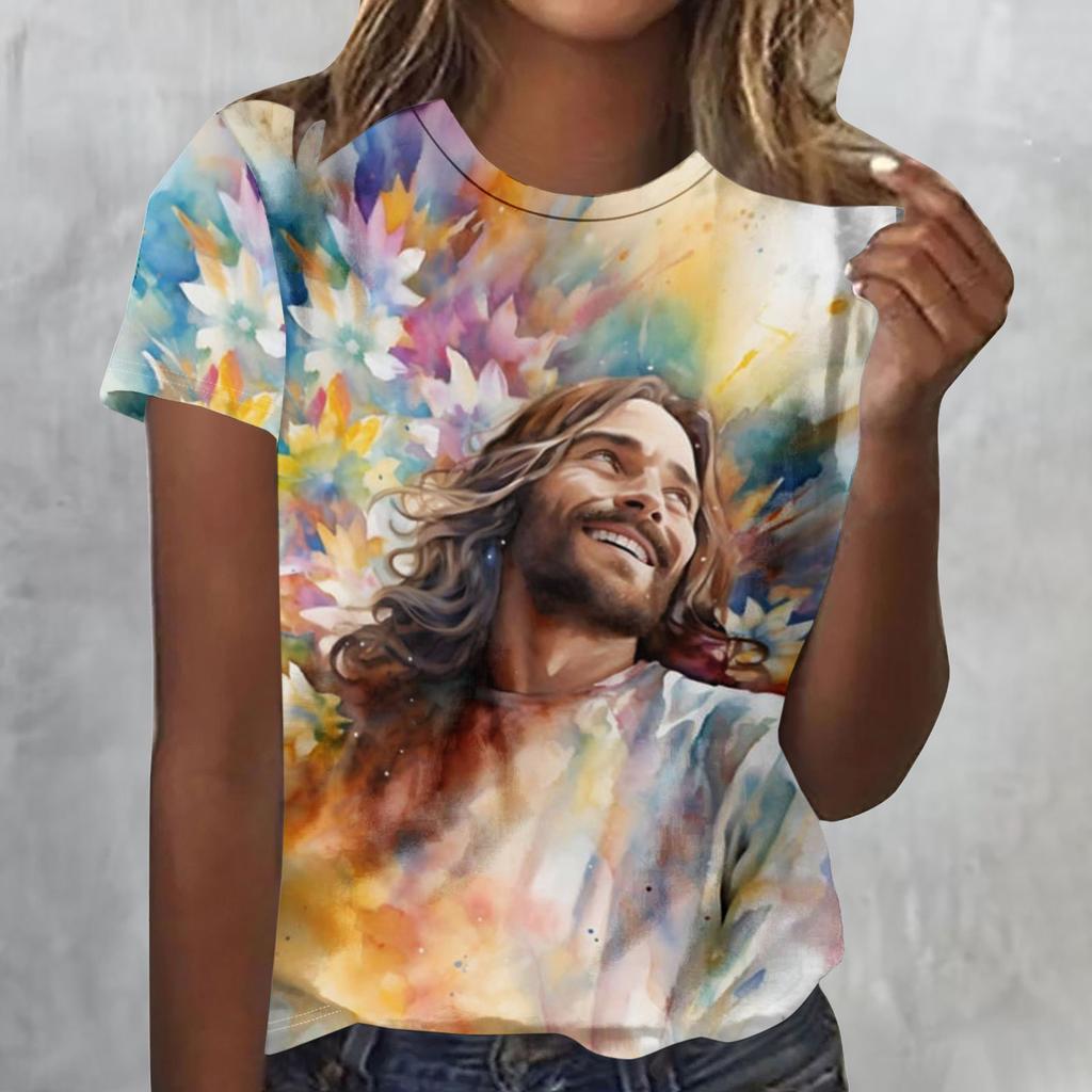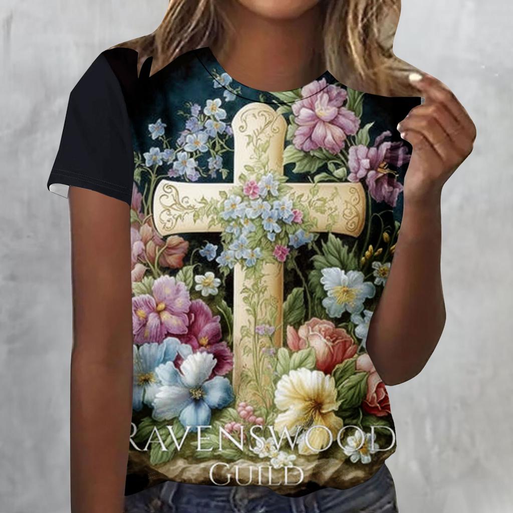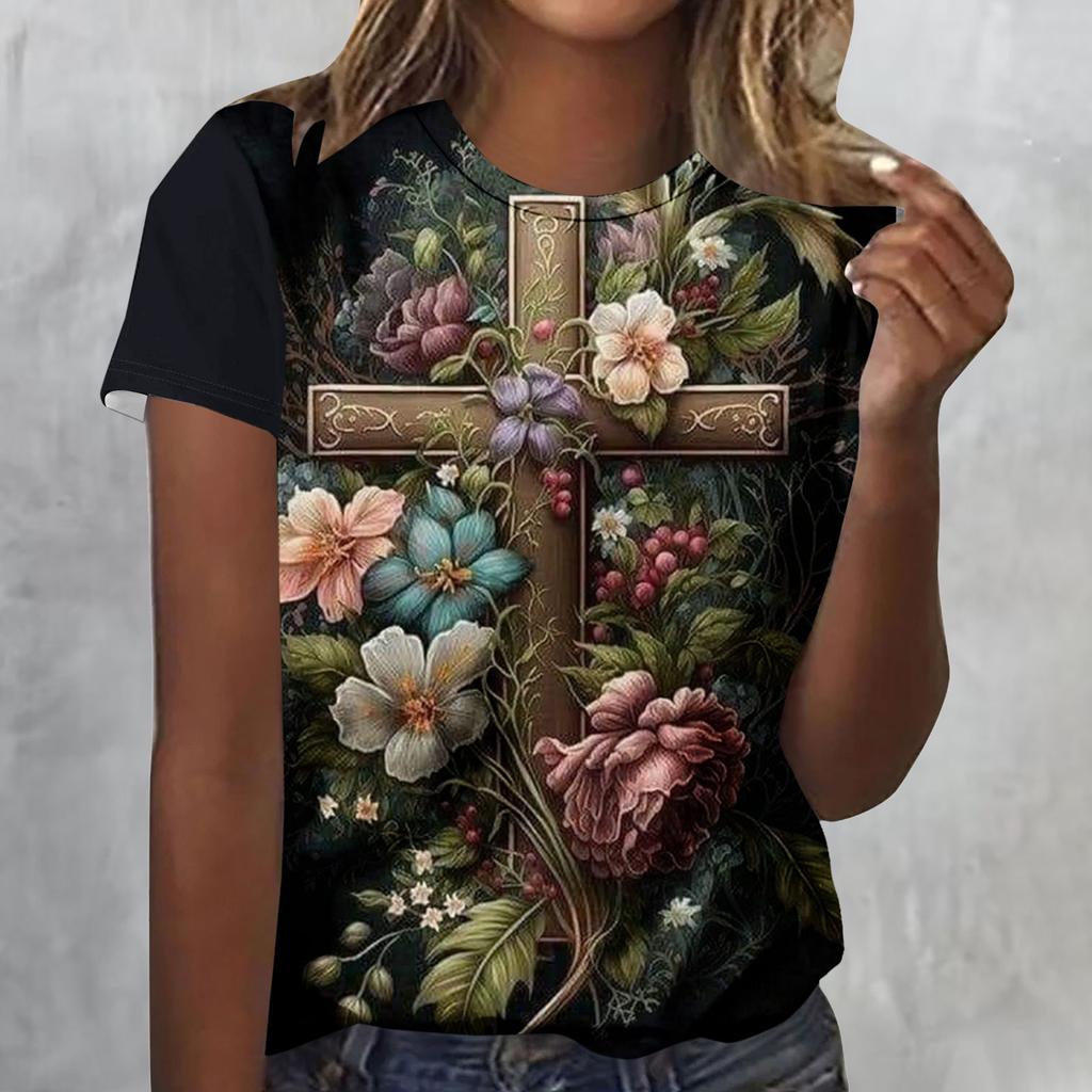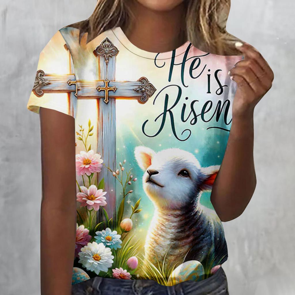 Летний топ с круглым вырезом и 3D-принтом в виде цветов, животных и кроликов, модные повседневные женские футболки с короткими рукавами