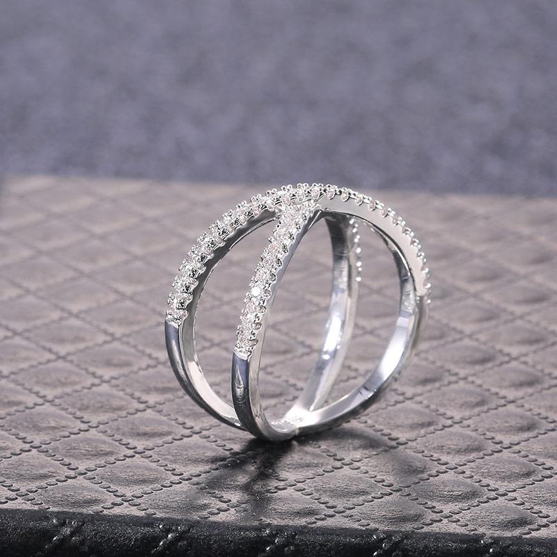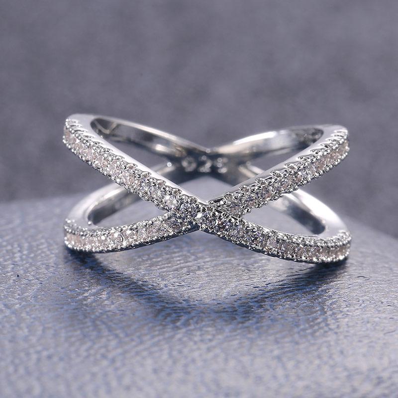 Huitan Luxury Cross X Shape Women Engagement Ring Full Paved CZ Stone Color Elegant Simple Female Jewelry Ring Sale
