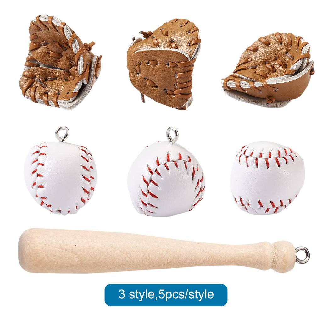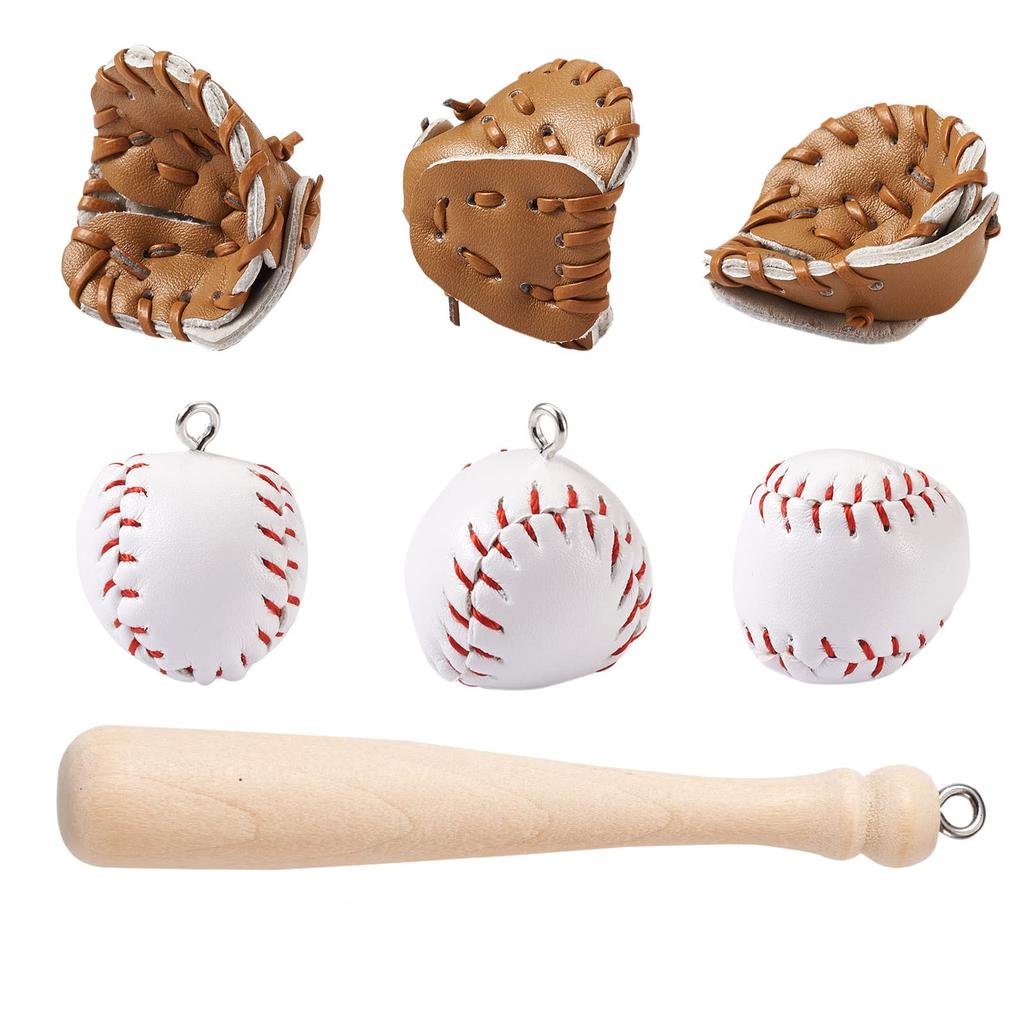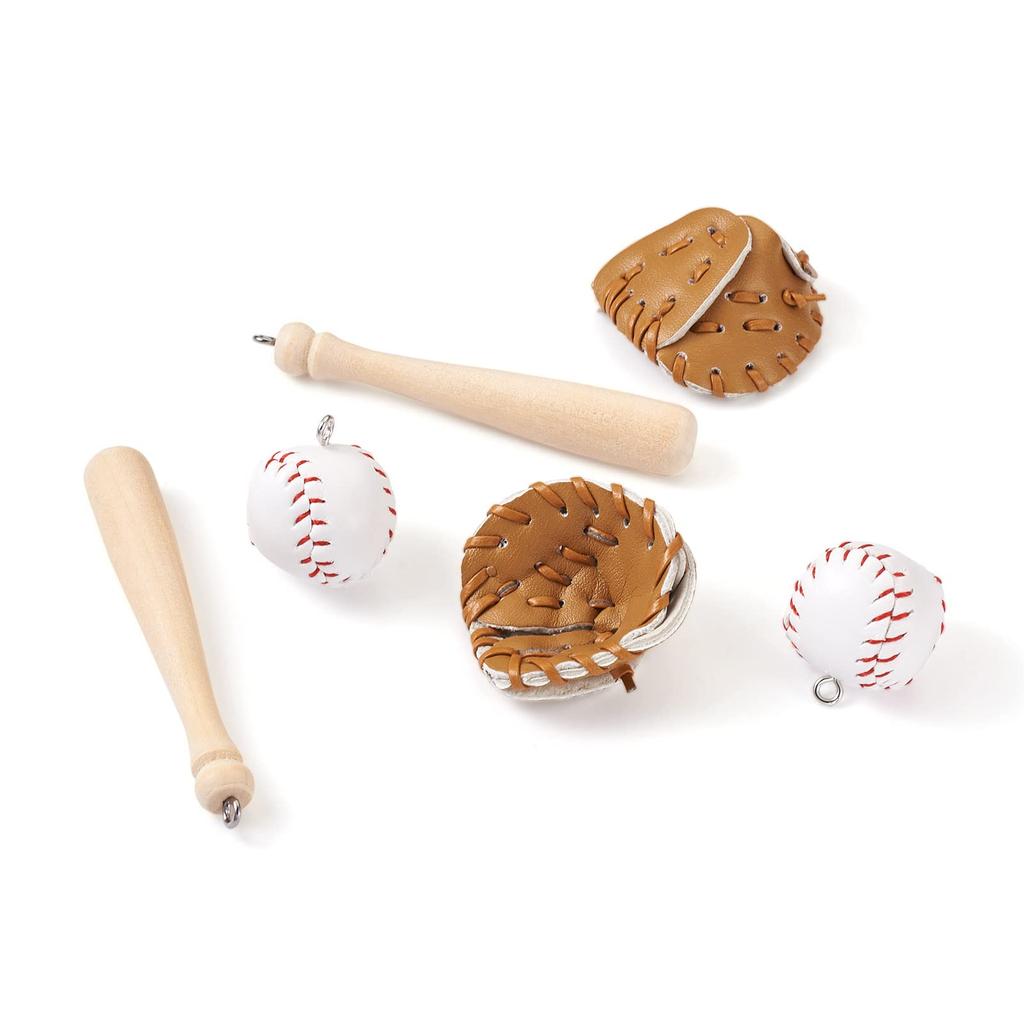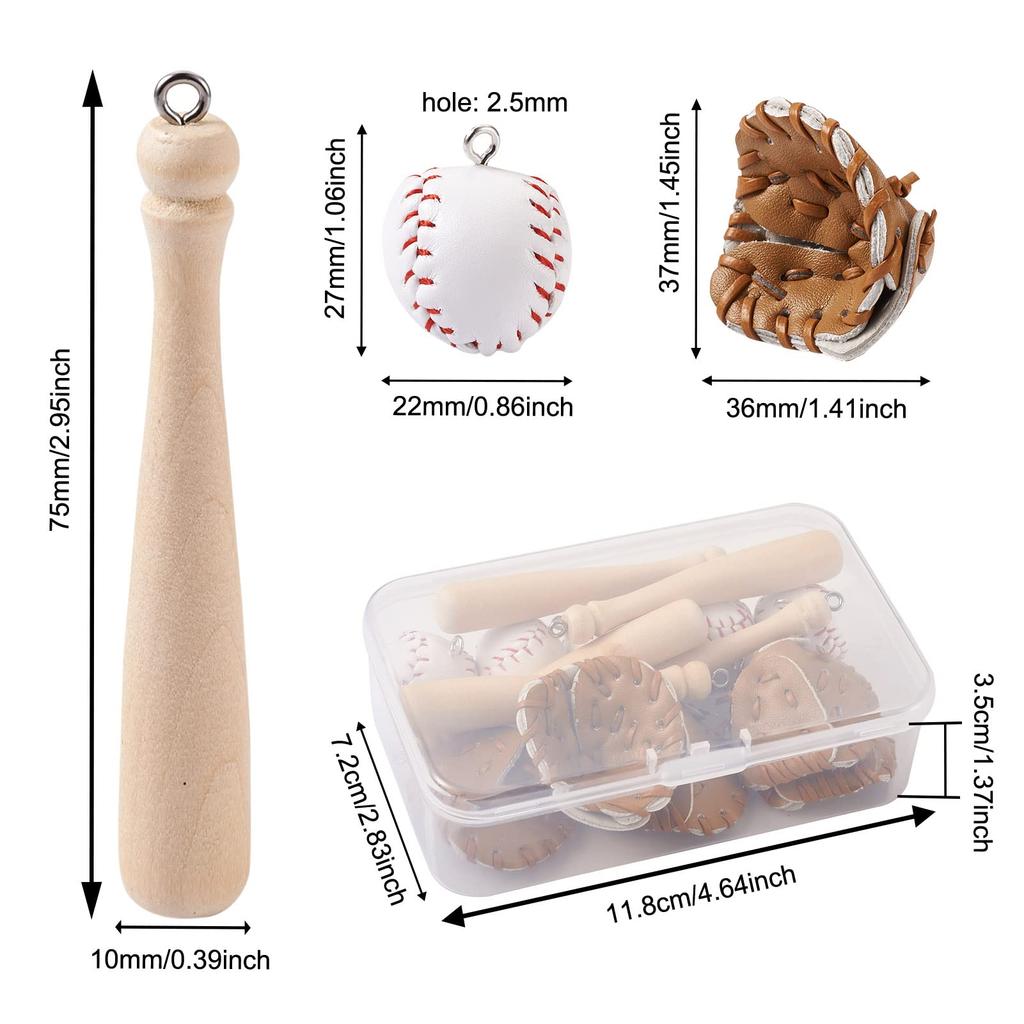 [Характеристики]: ☆Размер: [Перчатки]: приблизительно. 37x36x18мм. [Летучая мышь]: Приблизительно 75x10 мм. [Бейсбол]: приблизительно. 27x22мм, Отверстие: 2,5 мм. ☆Материал: ПУ кожа, дерево, с железным крючком. ☆Количество: По 5 штук каждого из 3 видов, всего 15 штук.