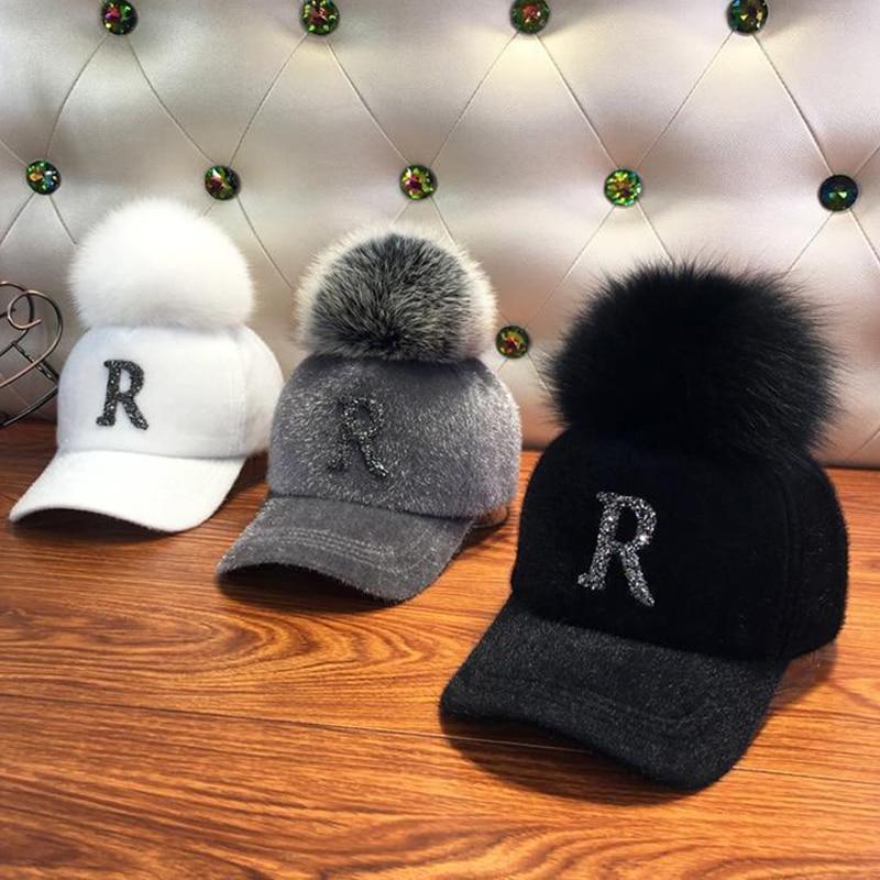 Осенне-зимняя теплая бейсболка для женщин со стразами и буквами в стиле хип-хоп, кепки для женщин и девочек, повседневные шляпы от солнца с меховым мячом — купить товар онлайн с бесплатной доставкой по всему миру!