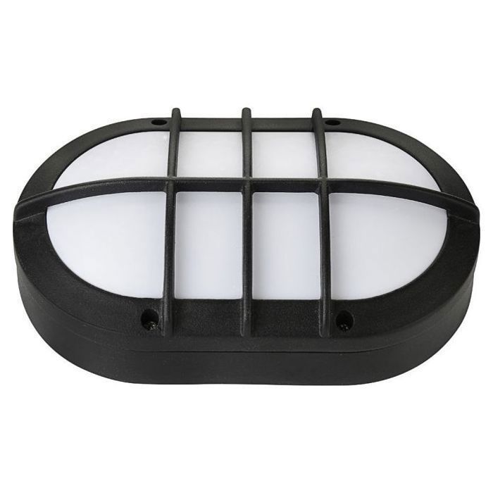 Hublot ovale noir à LED 8W (Eq. 64W) IP54 4000K grille protection Dim. 130x211x57mm