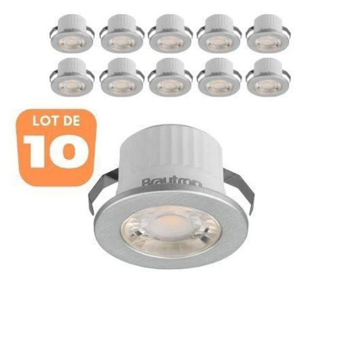 Lot de 10 minis spots LED rond argent 3W 6500K IP54