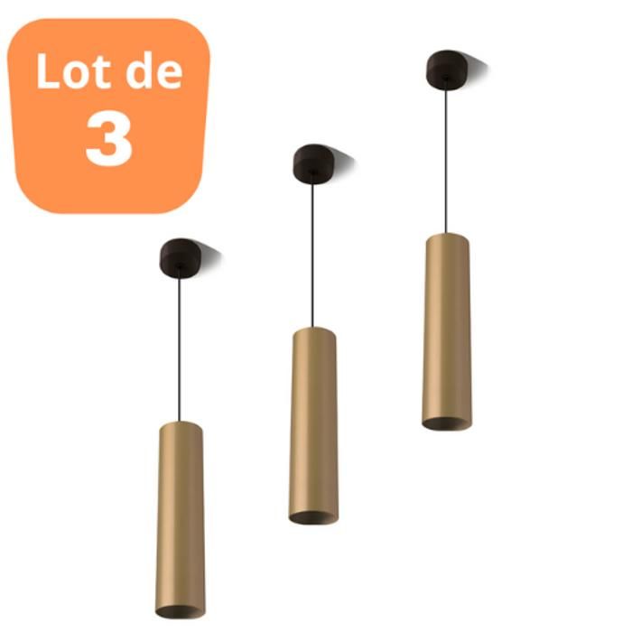 Lot de 3 suspensions tube BETA doré GU10 câble 1.45m