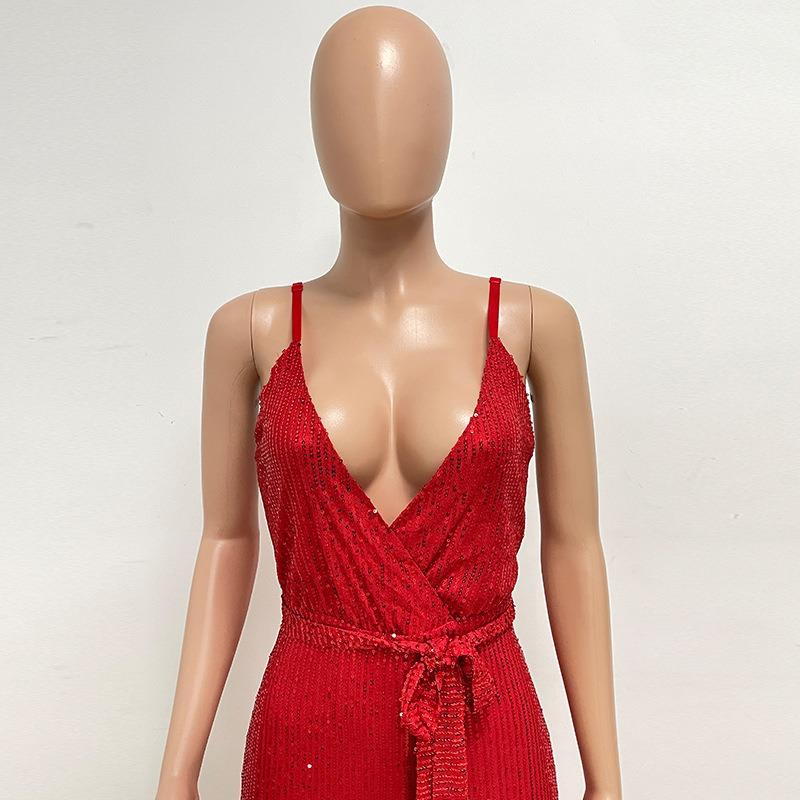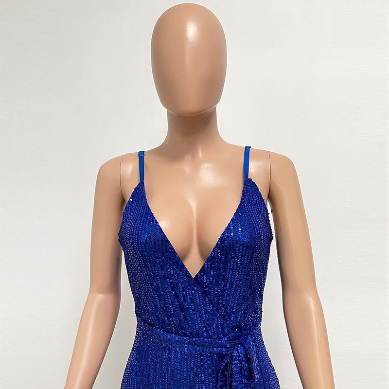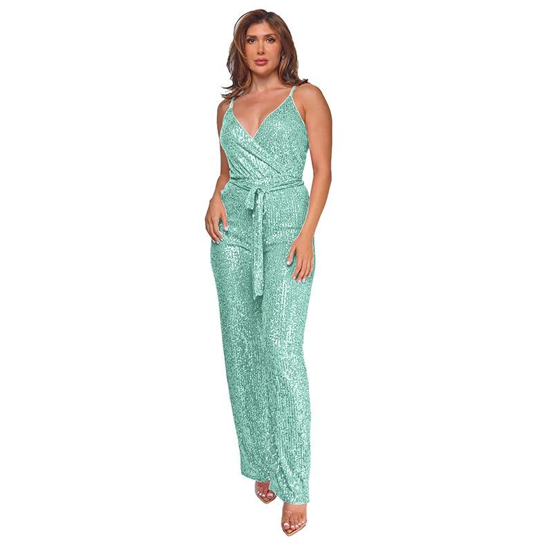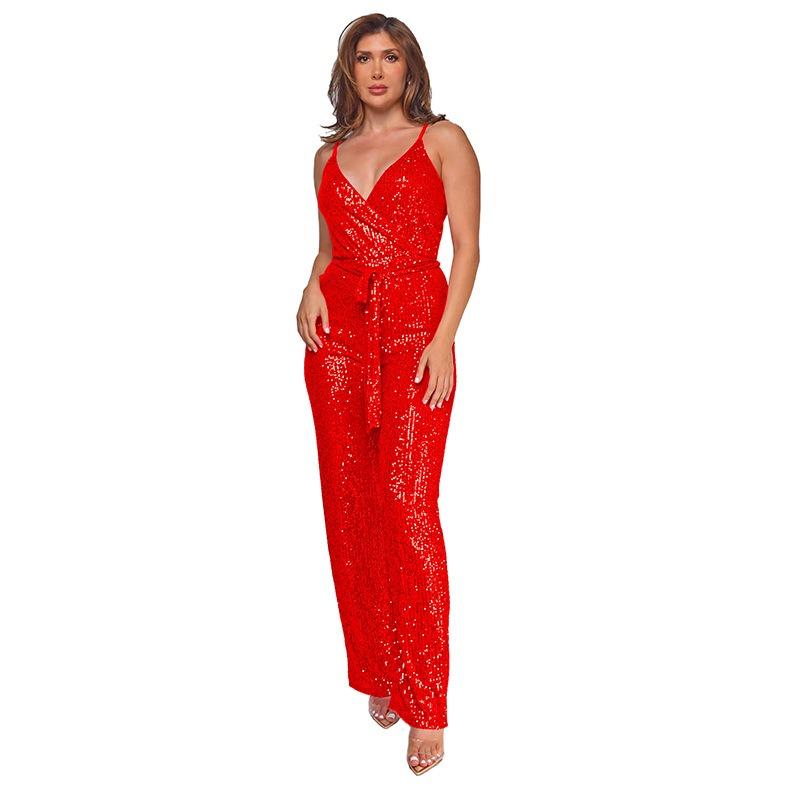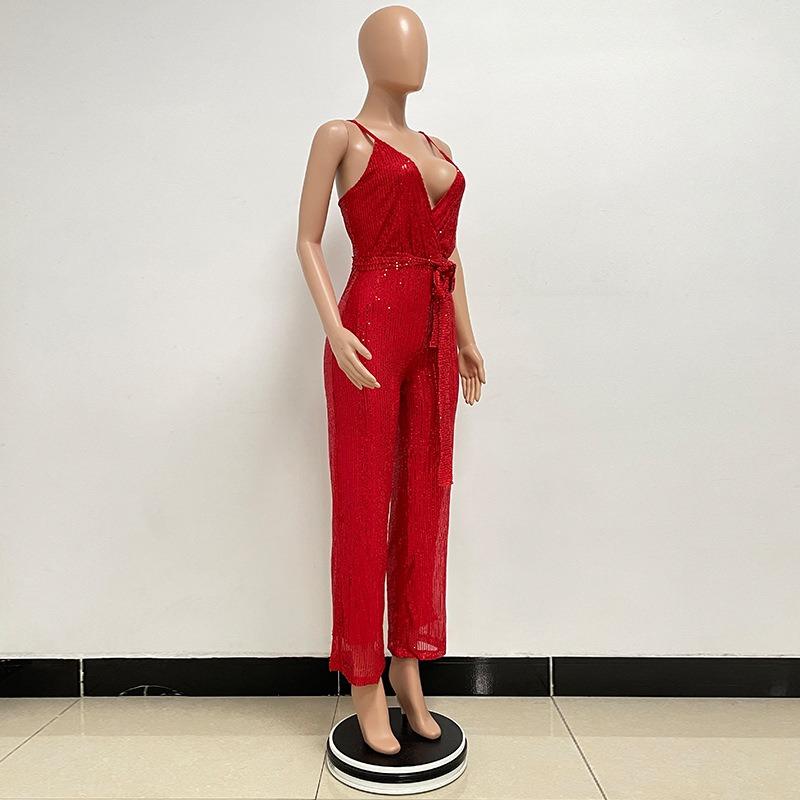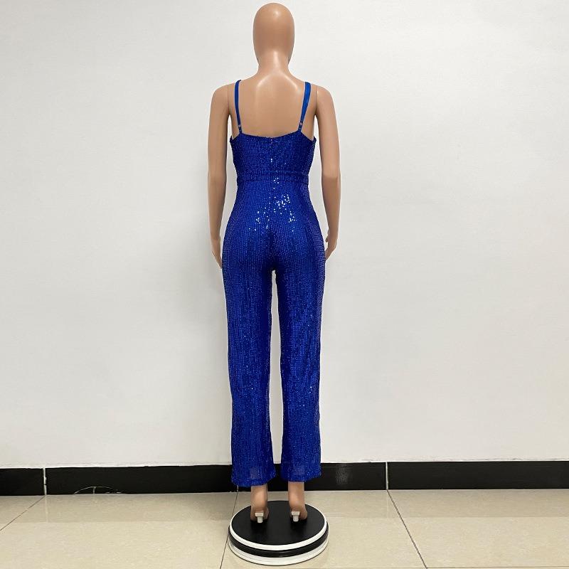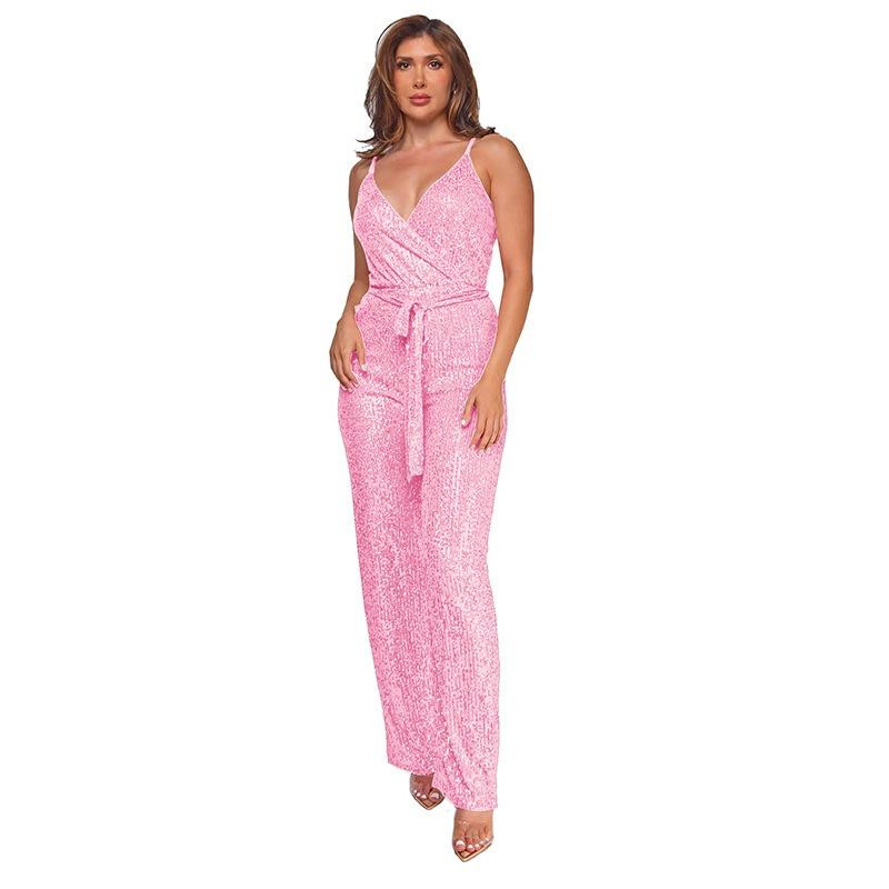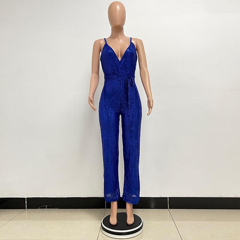 Женский комбинезон без рукавов с бретелькой через шею и глубоким V-образным вырезом и широкими штанинами