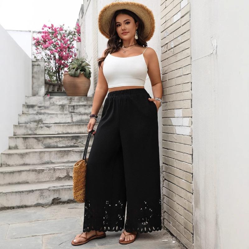 Женские летние новые свободные широкие брюки с вырезами черного цвета
