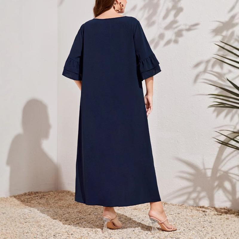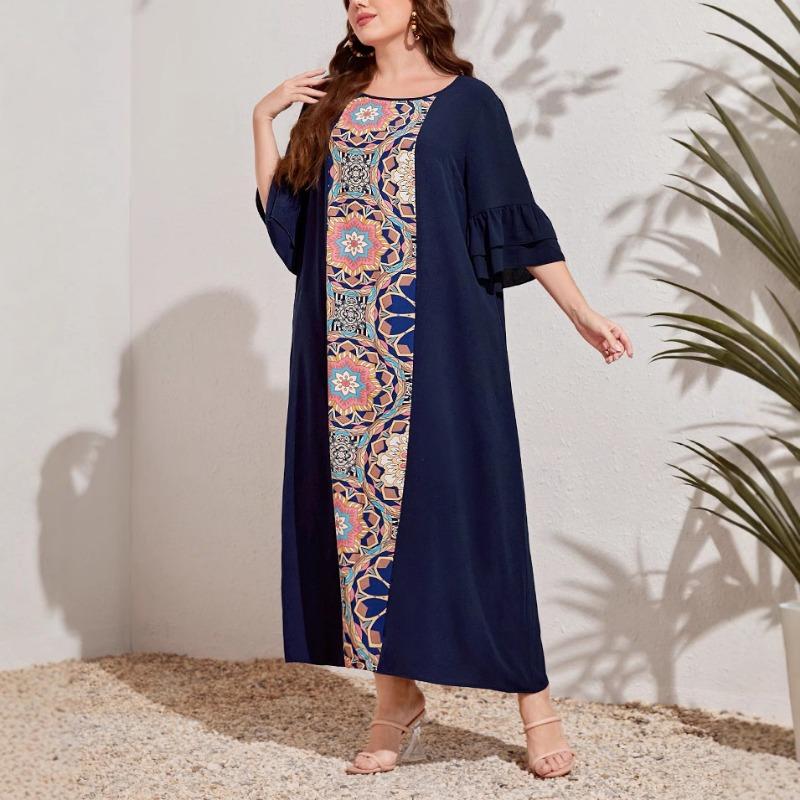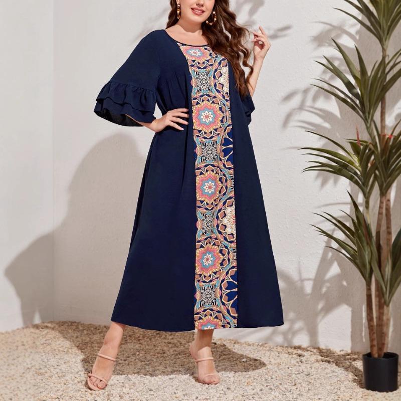 Плюс Размер Женский Новый Принт Пуловер Темперамент Пригородный Длинное Платье