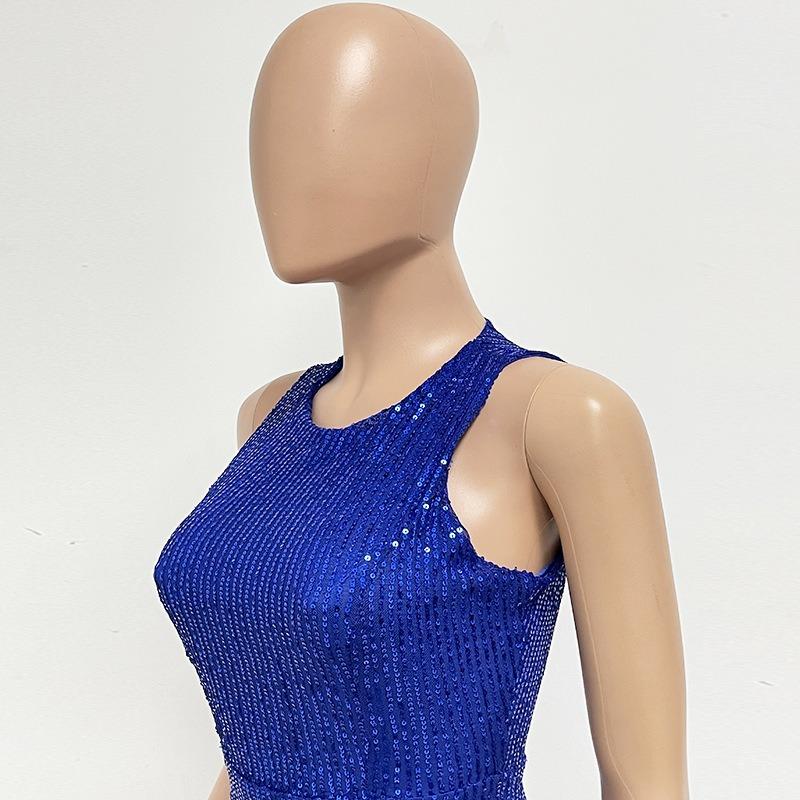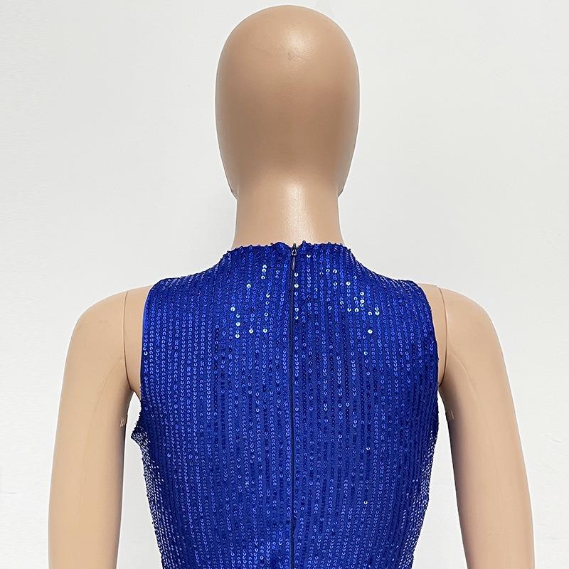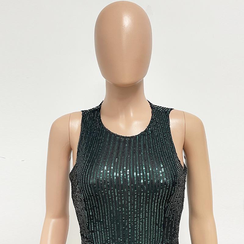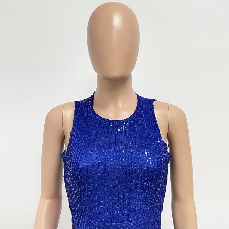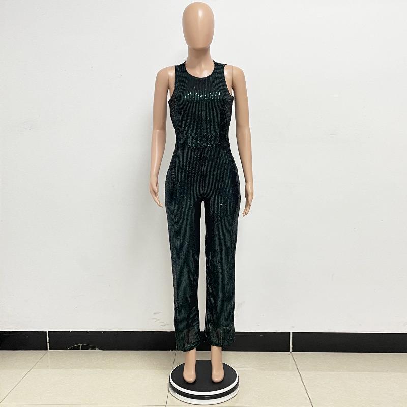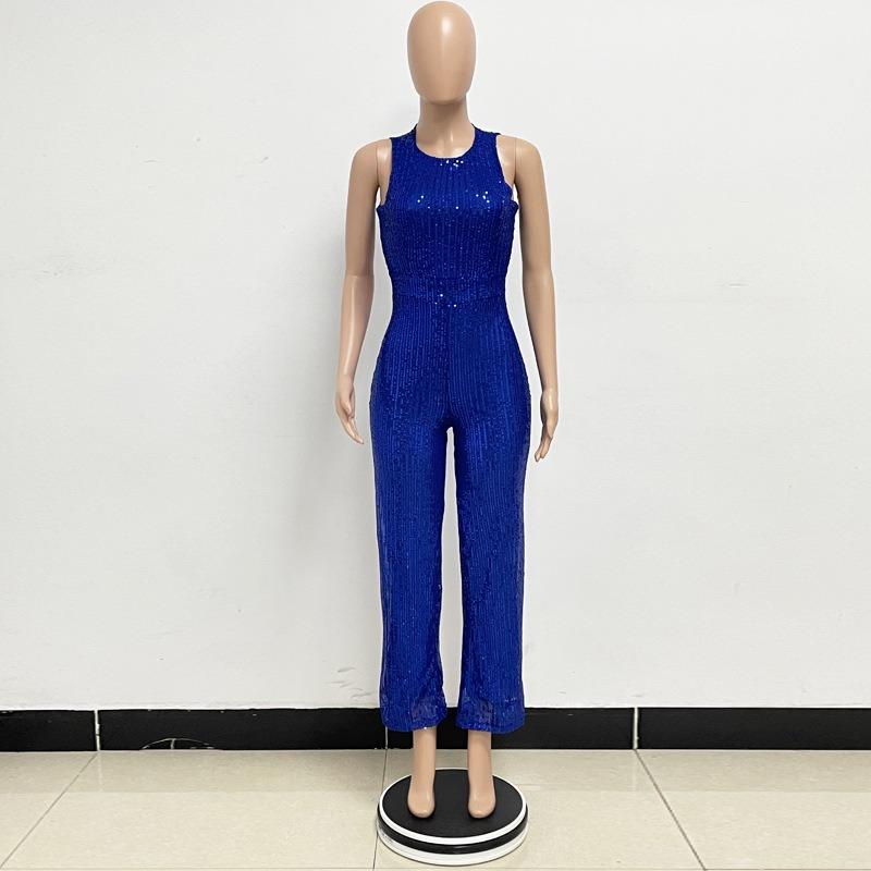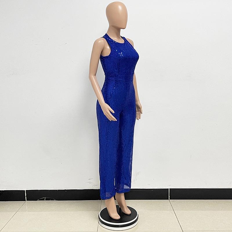 Женский модный комбинезон без рукавов с круглым вырезом и высокой талией с пайетками