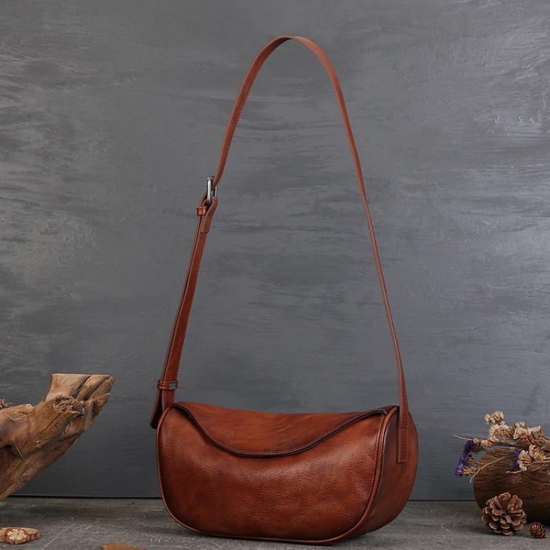 Уличная винтажная сумка-пельмень из натуральной кожи, ручная работа, однотонная одноплечевая сумка из коровьей кожи, большая вместимость, сумка через плечо для женщин