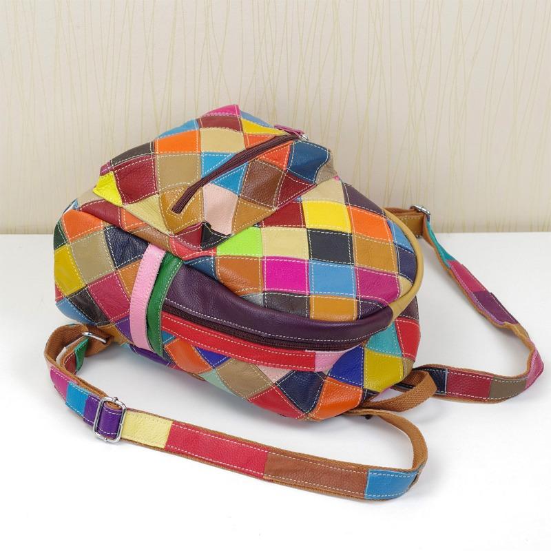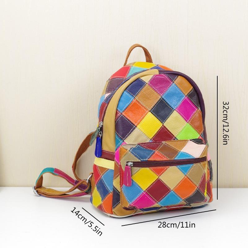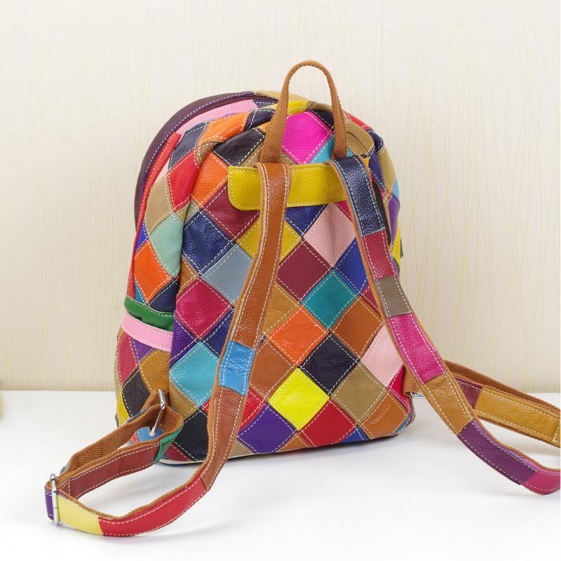 Женская сумка из натуральной кожи с бантом сверху и слоем коровьей кожи, цветной контрастный рюкзак, женский рюкзак