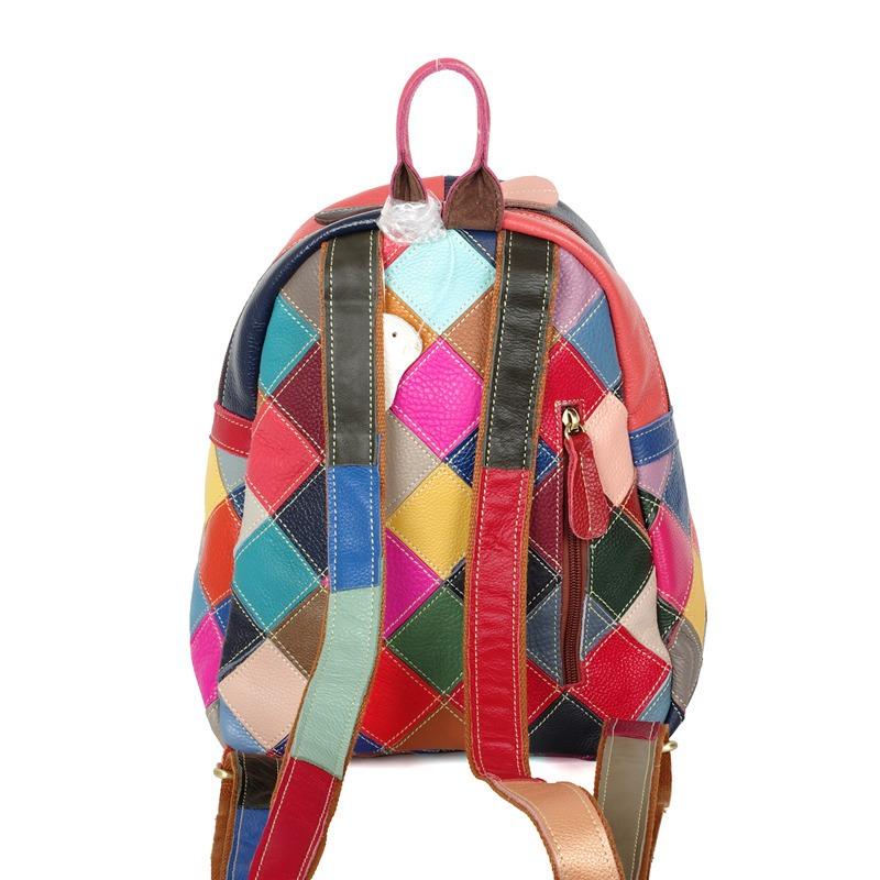 Женская сумка с цветным контрастным геометрическим узором, контрастная по цвету сумка для отдыха из натуральной кожи, рюкзак