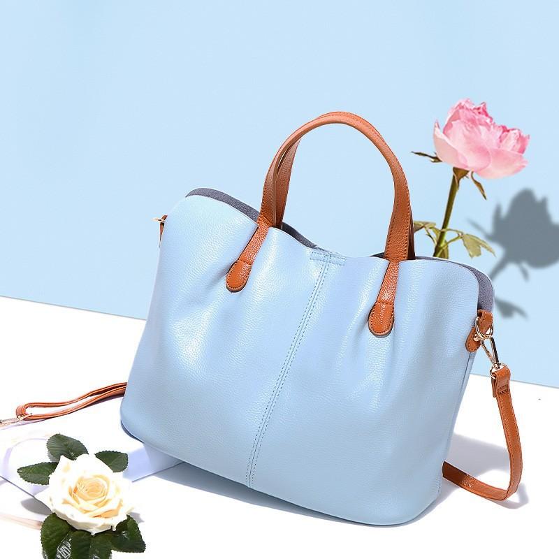 Кожаная женская сумка, модная, цветная, контрастная, с верхним слоем, из коровьей кожи, большая сумка, через плечо, женская сумка