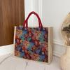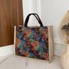 Женская сумка в этническом стиле с ретро-текстурой и цветочным принтом, сумка через плечо, холщовая сумка, льняная сумка-тоут, повседневная сумка