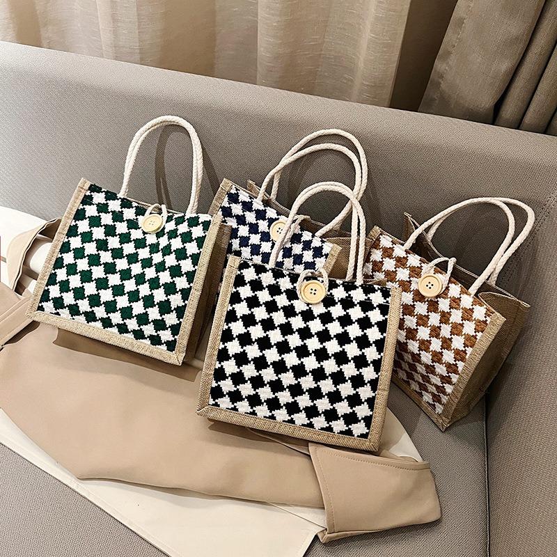 Клетчатая льняная холщовая сумка на одно плечо, сумка-тоут, классическая сумка для покупок, сумка-шоппинг в стиле ретро в стиле знаменитостей из Интернета, женская сумка в стиле ретро