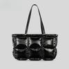 Женские сумки из хлопка с пухом, сумки через плечо большой емкости, модная глянцевая нейлоновая сумка-тоут из хлопка сэндвич