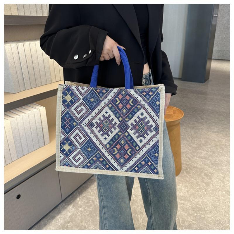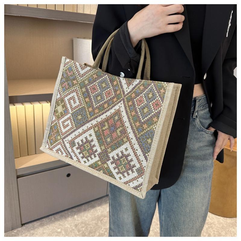 Модная женская сумка National Wind с большой емкостью из холщовой ткани и хлопка, конопляная сумка через плечо, женская сумка