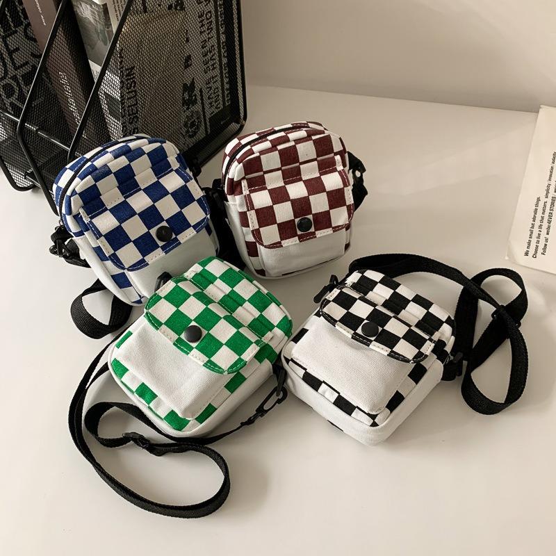 Клетчатая одноплечевая холщовая маленькая женская сумка Harajuku Girl Soft Sister Trend Crossbody Bag — купить товар онлайн с бесплатной доставкой по всему миру!