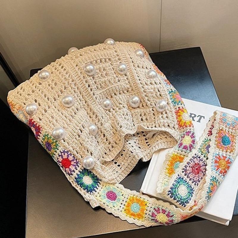 Женская вязаная шерстяная сумка через плечо с цветочным узором в стиле бохо-фолк, сумка-тоут Relaxant