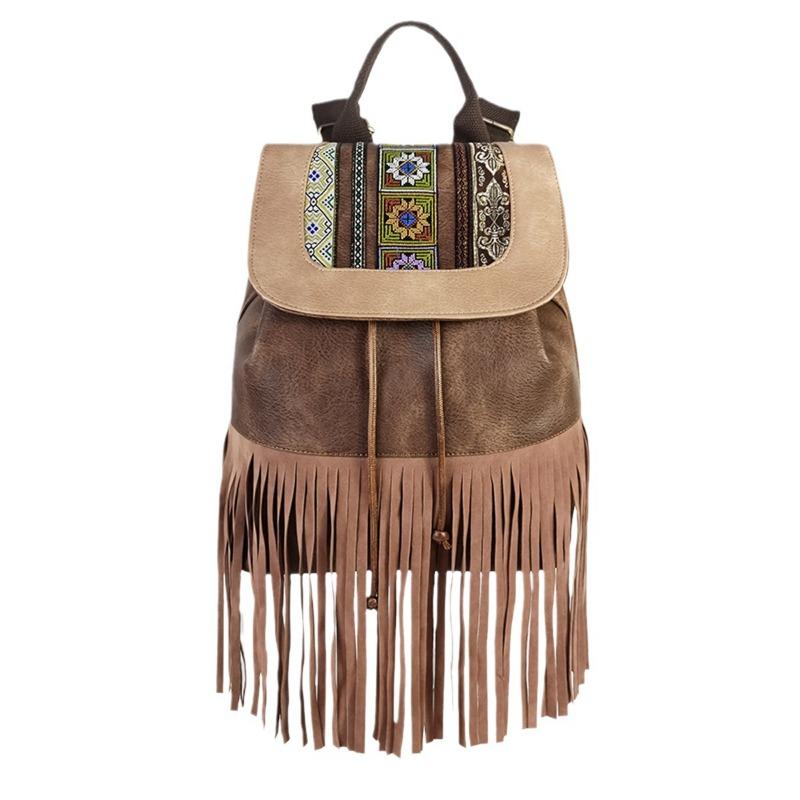 Рюкзак из ПУ, водонепроницаемый, богемный, винтажная вышивка, кисточка, дорожная сумка, студенческая сумка