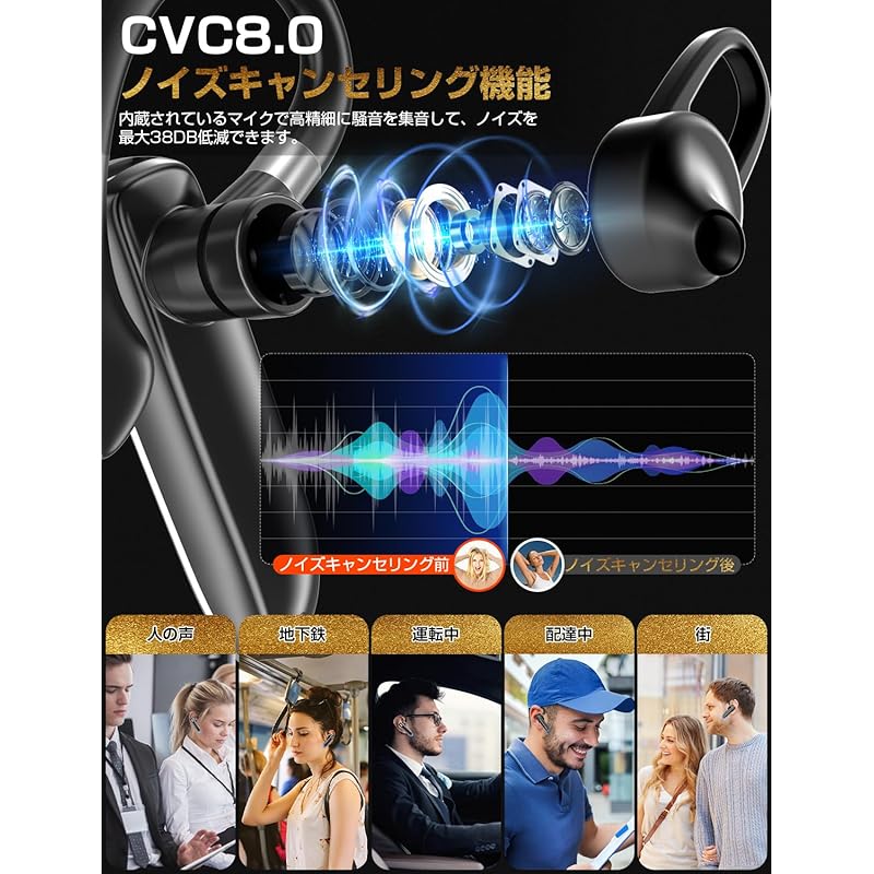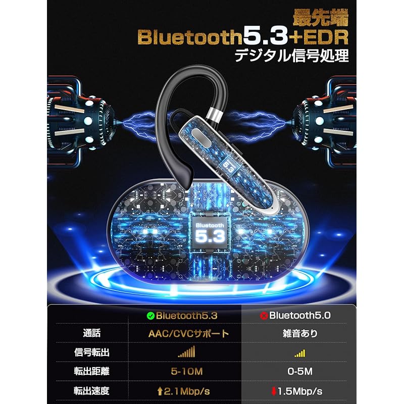 ⚡[Industry-leading Bluetooth 5.3 & CVC 8.0 Noise Canceling] Equipped with the industry-leading Bluetooth 5.3 chip, it provides high-speed and stable call quality without any bumps or interruptions, and "skipping".It can greatly improve the sound cut-out.Since it is a one-ear type, you can keep track of your surroundings while talking on the phone without blocking both ears.Furthermore, the microphone section also has a CVC8.0 noise canceling function, so your voice will be transmitted clearly.🎸The noise on the other side is also significantly reduced, allowing you to hear clearly.Every detail has been carefully designed, from digital signal processing to improve sound quality to antenna position for stable Bluetooth connectivity.You can also use it to listen to music on crowded trains or buses without having to worry about cables, so you can enjoy music comfortably even in crowded situations.