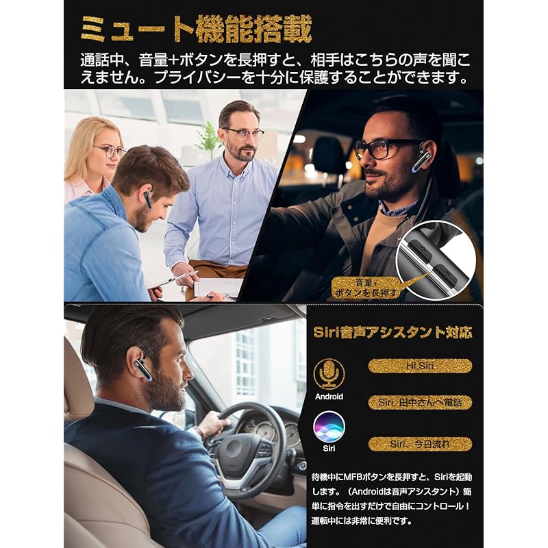 🎧[Equipped with microphone for hands-free calls and mute function] Our Bluetooth headset is equipped with a unidirectional microphone and CVC8.0 noise canceling function, which accurately picks up voices and blocks noise from the surroundings., you can achieve clearer calls and deliver clear audio to the other party even in noisy places.Furthermore, the stick-type design makes it easier to bring the microphone closer to your mouth, allowing you to make clear voice calls, making it useful for telework and web conferencing.In order to protect your privacy to the maximum extent possible, a mute function is also included. If you press and hold the volume button during a call, the other party will no longer be able to hear you, which is useful when handling confidential information, such as during a meeting.It also supports Siri functionality, so you can activate voice control while driving.Free your hands from busy tasks such as online meetings, driving, housework, and package delivery.📞