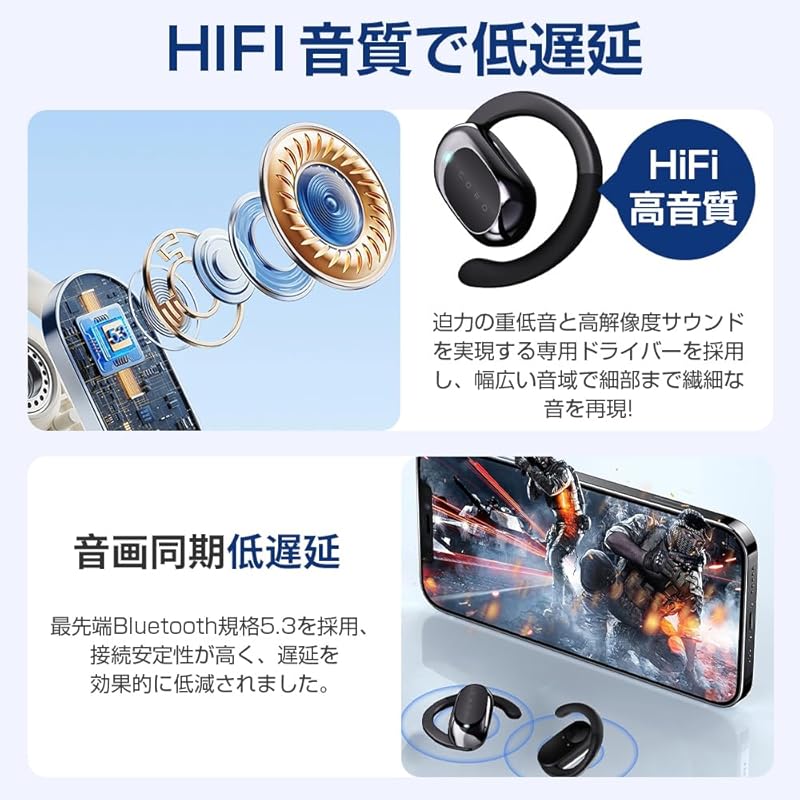 [Stable and Smooth Communication] This product uses version 5.3 of the latest Bluetooth standard, which provides high connection stability, reduces skipping and interruptions, and effectively suppresses audio delays.Equipped with independent communication chips on both the left and right sides, it can be used on one side or both sides at the same time, making it easy to use.