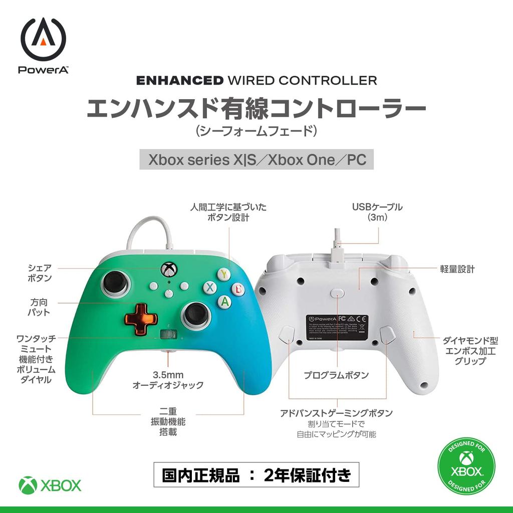 Year PowerA Enhanced Wired Controller Seafoam Fade Double Vibration Function Back Button Xbox Series Xbox Windows [2 Warranty] XS One, PC, 10/11