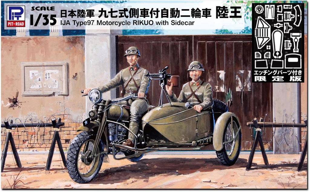Pit Road Grand Armor Series Японский армейский мотоцикл Type 97 с коляской Rikuo с деталями Пластиковая модель G50E 1/35 Фототравление