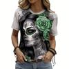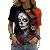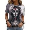 Женская повседневная футболка с принтом скелета, топ с круглым вырезом, летняя футболка с коротким рукавом, женская свободная одежда, модный уличный пуловер