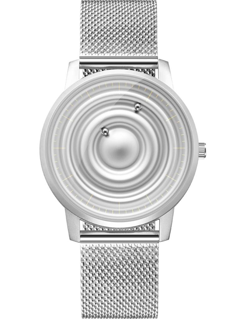 Магнитные часы с шарикоподшипником, дизайн унисекс, кварцевые часы, минимализм, повседневные, водонепроницаемые, 40 мм, серебристый циферблат, серебристый ремешок из нержавеющей стали, сетчатый ремень [EUTOUR]
