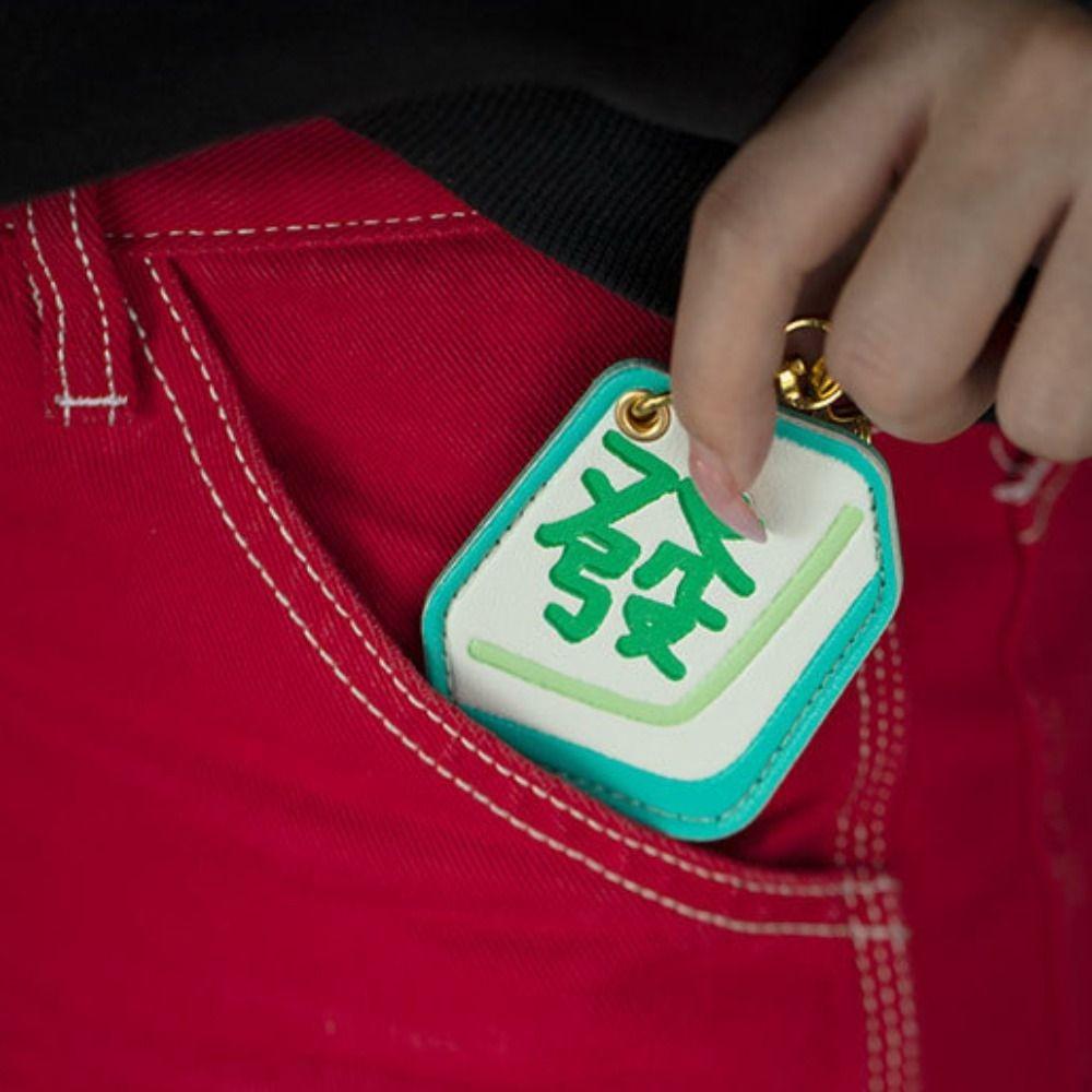 Chinese Style Mahjong Entrance Guard Card Cover Traditional Green Dragon Keychain Couple