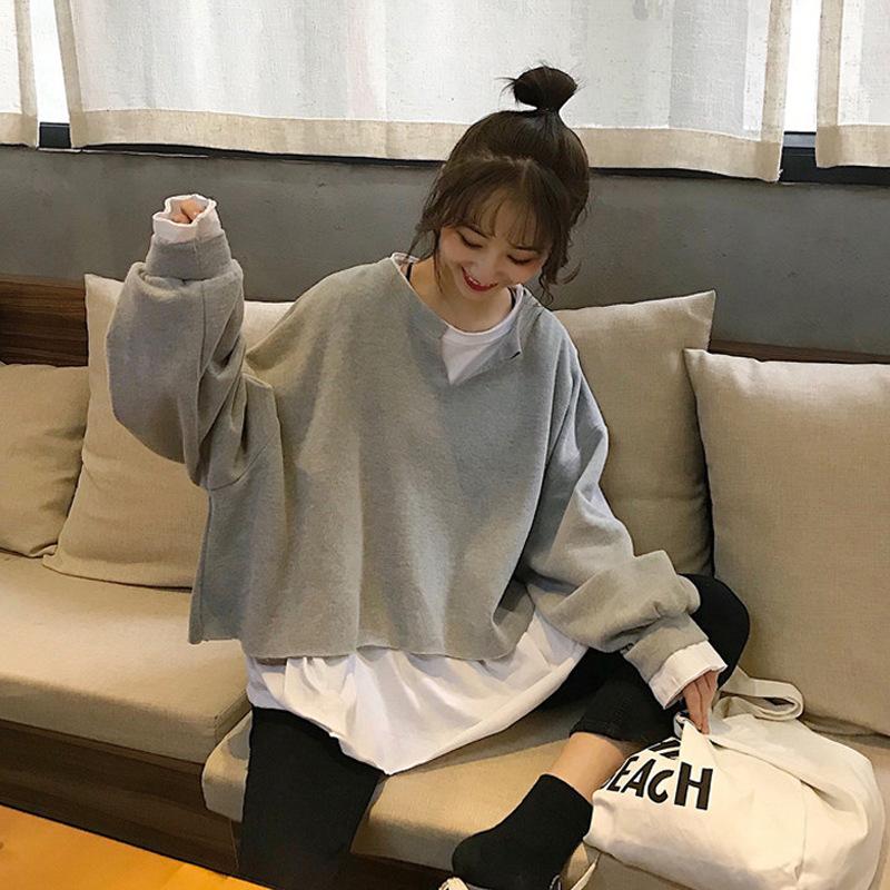 Новая осенняя одежда в корейском стиле, свободный и универсальный дизайн, тонкая модель, поддельная двухкомпонентная футболка с длинными рукавами, толстовка, женский топ — купить товар онлайн с бесплатной доставкой по всему миру!