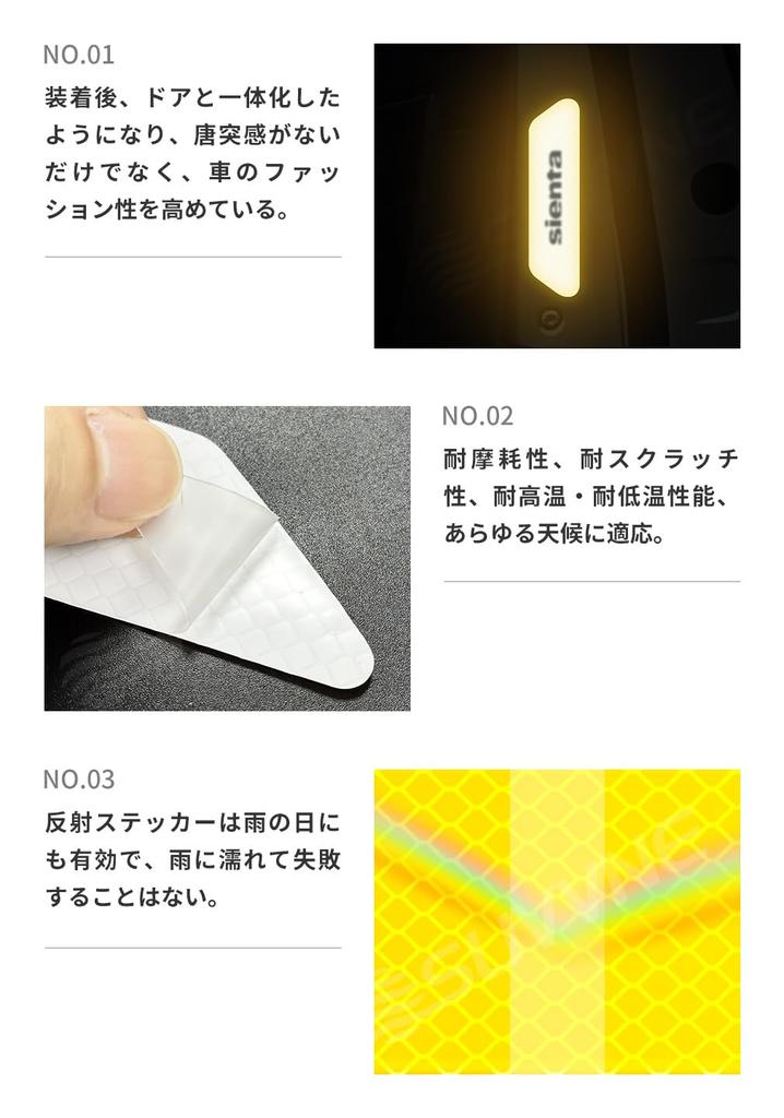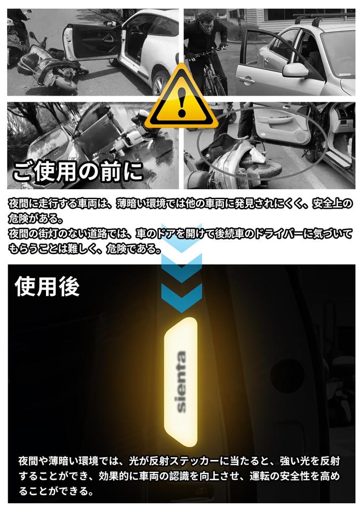 Светоотражающая наклейка на автомобиль SUVVNE Светоотражающая наклейка Только для New Sienta 10 серии (Август 2022 г. — Текущее время) Наклейка безопасности Светоотражающая наклейка на дверь автомобиля Использование