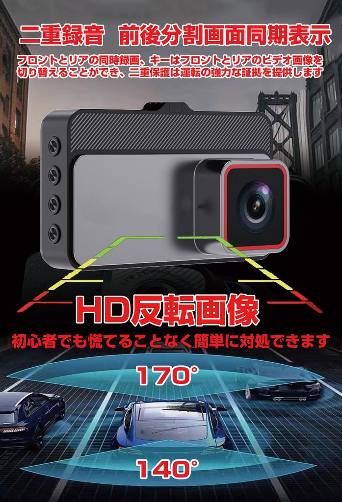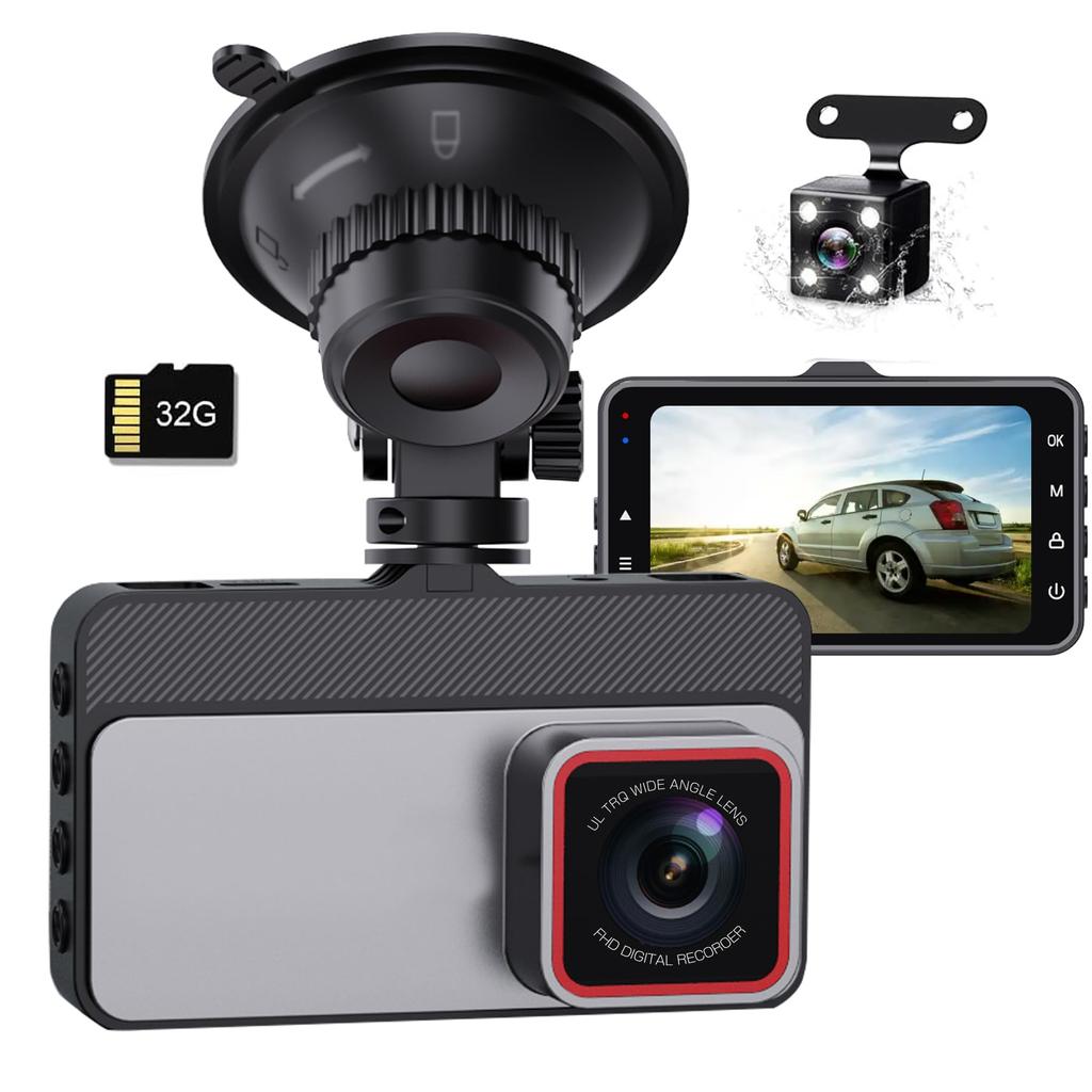 VSAIL Drive-регистратор для автомобилей, 2 камеры спереди и сзади, 3-дюймовый Drive-регистратор, небольшой Drive-регистратор, 3 миллиона пикселей 1296P, 170 градусов, сверхширокоугольный